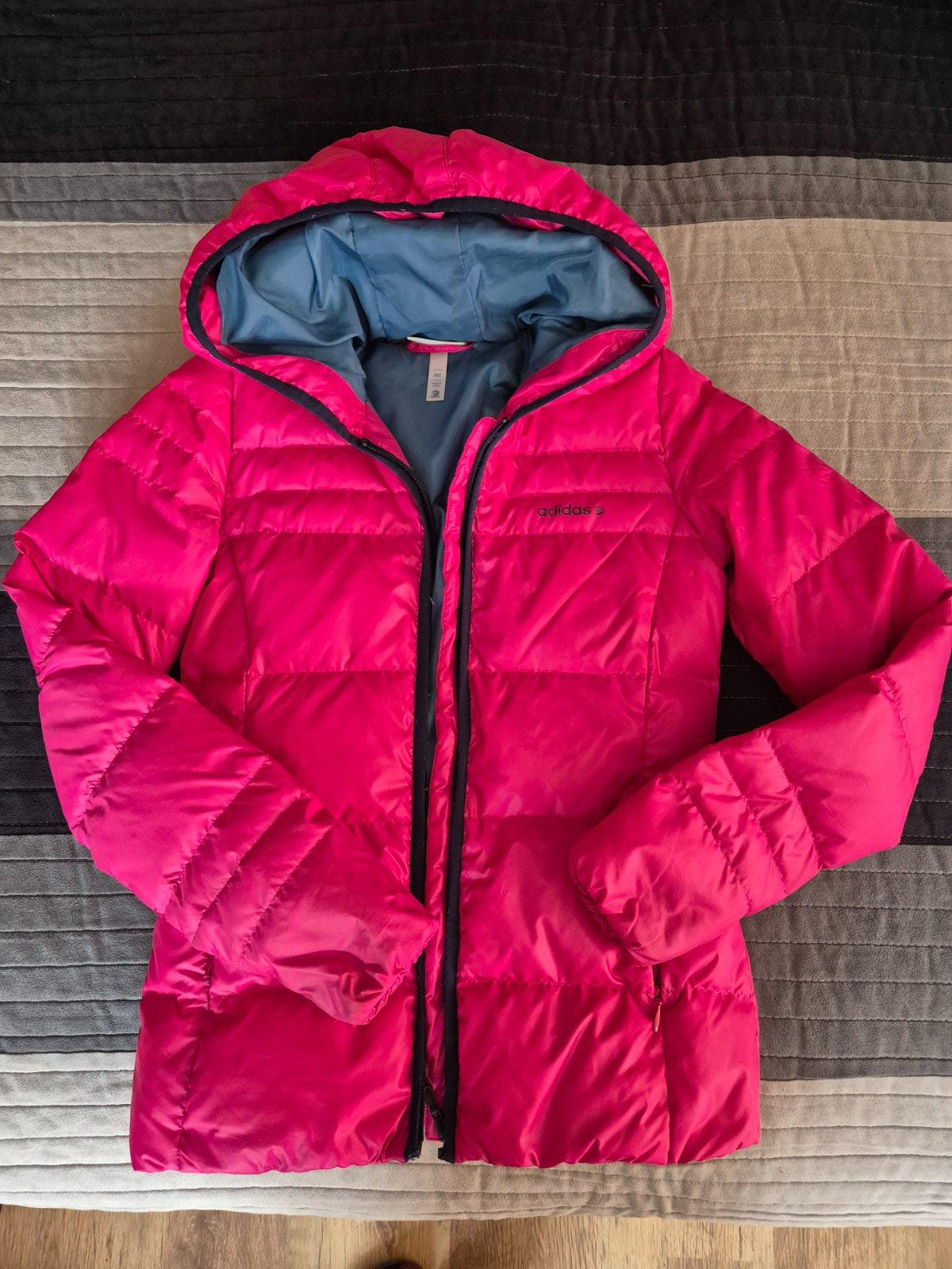 Bundička je v dobrom stave bez poskodení...dcérke je už úzka....širka pod pazuchou je 2 x 43 cm, dlžka rukava 61 cm, flzka bundičky 61 cm ...cena + pošta.