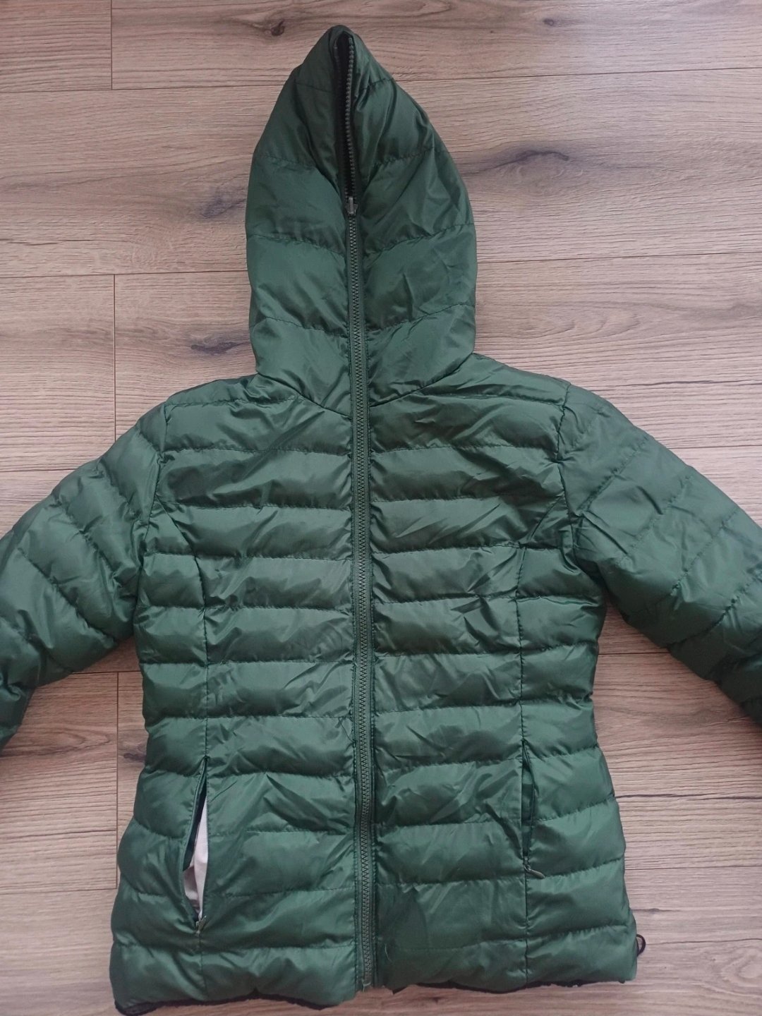 Predam presivanu bundicku, kupovanu v butiku. Farba je krasna, tmavozelena, lemovanie a zips su hnedej farby. Rada ju premeriam, je na nizsiu postavu 158-max 164 cm. Jemne vatovana. Veľkosť menšie...