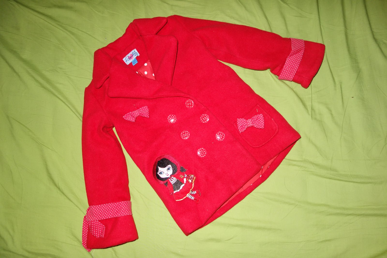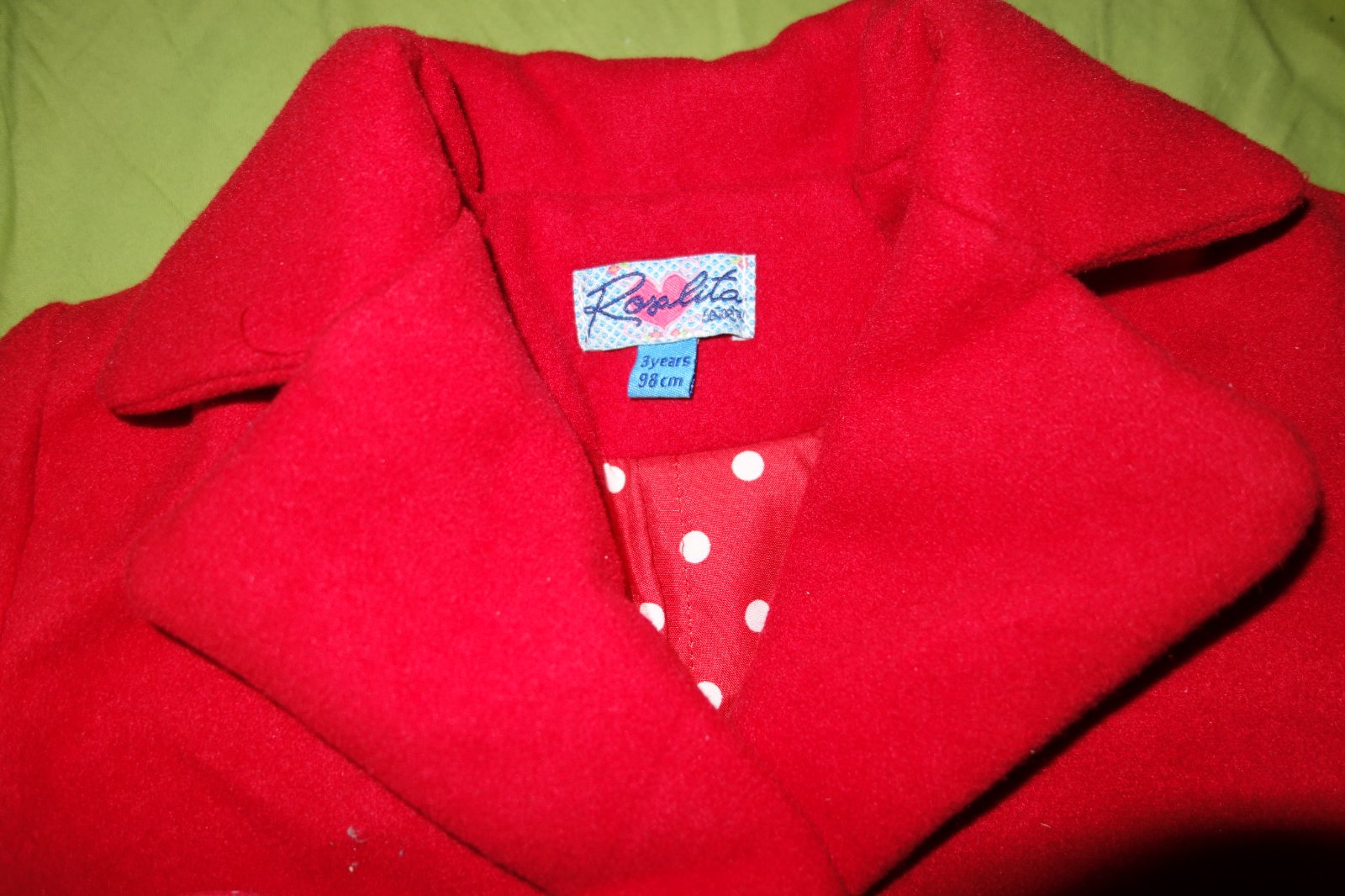 Nadherny znackovy kabatik vo velmi dobrom stave. Je tak do miernej zimy. Zapina sa na cvocky.