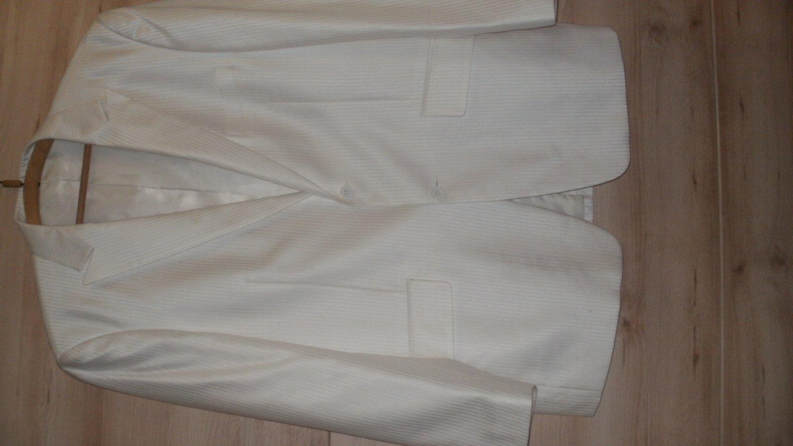 Biele lesklé sako s jemnými pásikmi veľ. 52