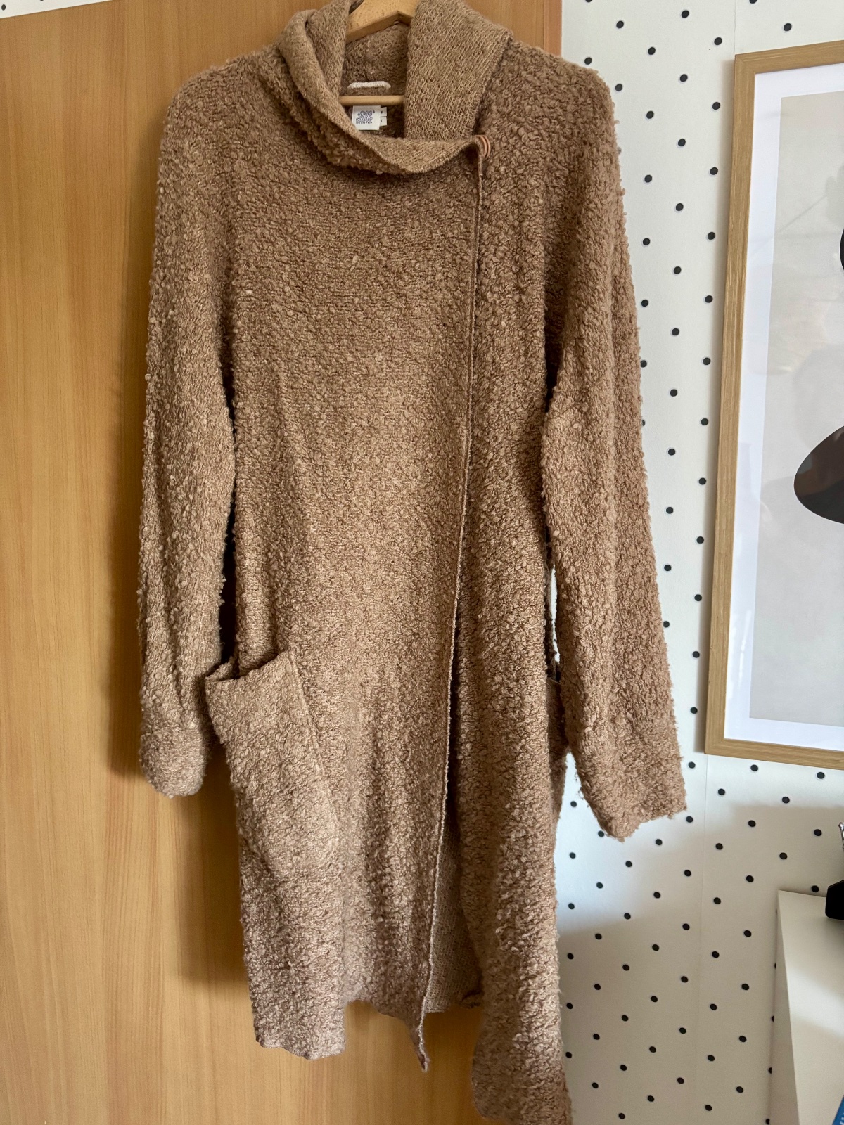 Slovenska slowfashion znacka LULL, makky hebky material, s vreckom, vhodny aj pod bundu aj ako horna vrstva, zapinanie na gombik hore, s obsahom bavlny, vlny a viskozy