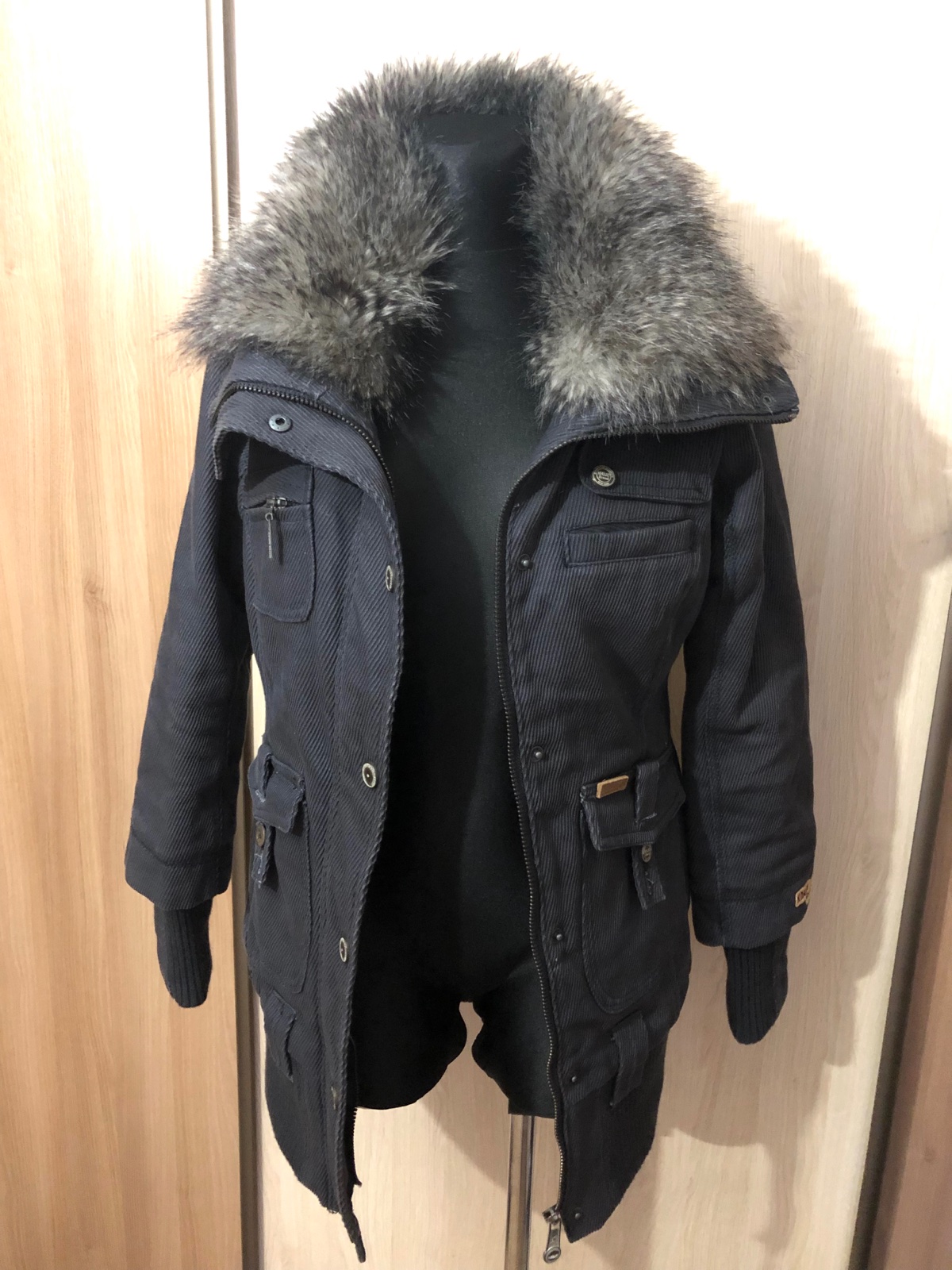 Zimna bunda CLTN velkost S, hnedo modrá, stĺpec 10000, snežný pas, nosena, funkčná- zipsy idu. Kapucna odzipsovateľná. Cena plus poštovné