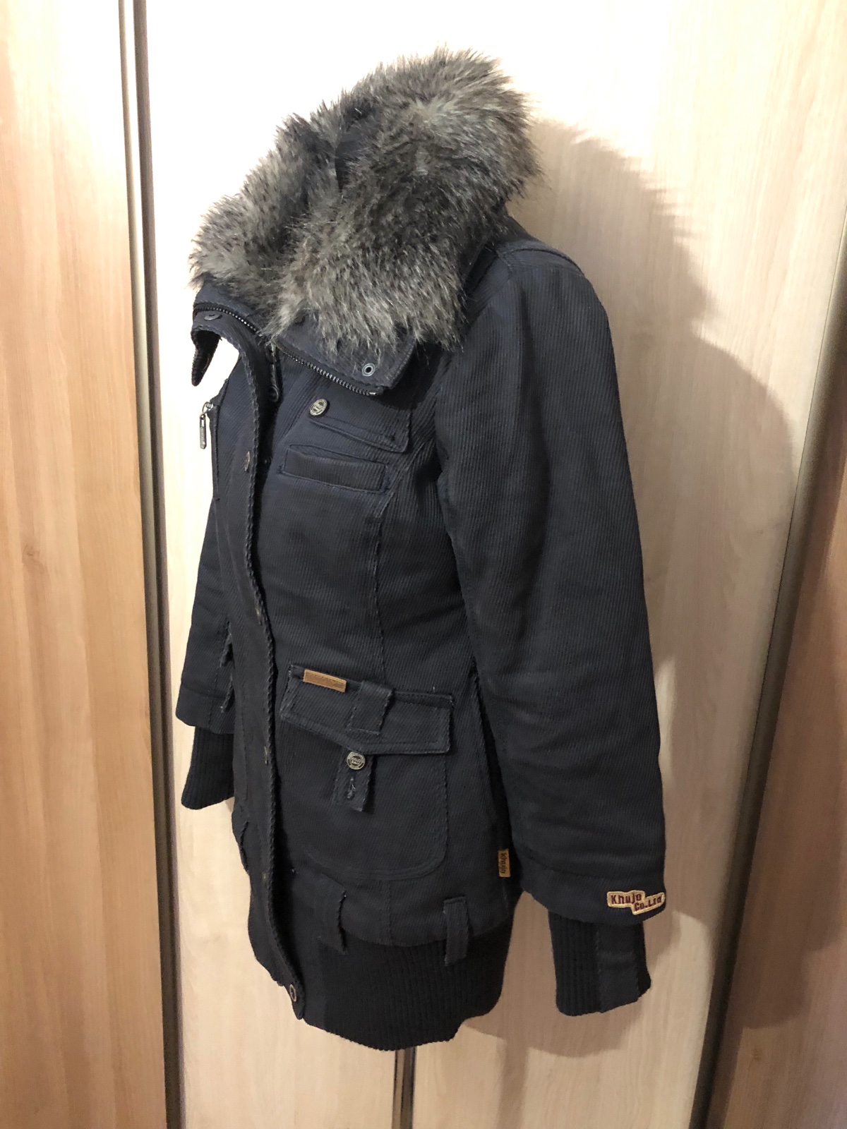 Na predaj pár krát nosená dámska teplá zimná, prešívaná bunda s kapucňou, zn. Adidas, veľkosť č. 36. Farba hnedá v kombinácii s oranžovou. Zapínanie vpredu na zips, 2 vačky. Kožušina na kapucni sa ...