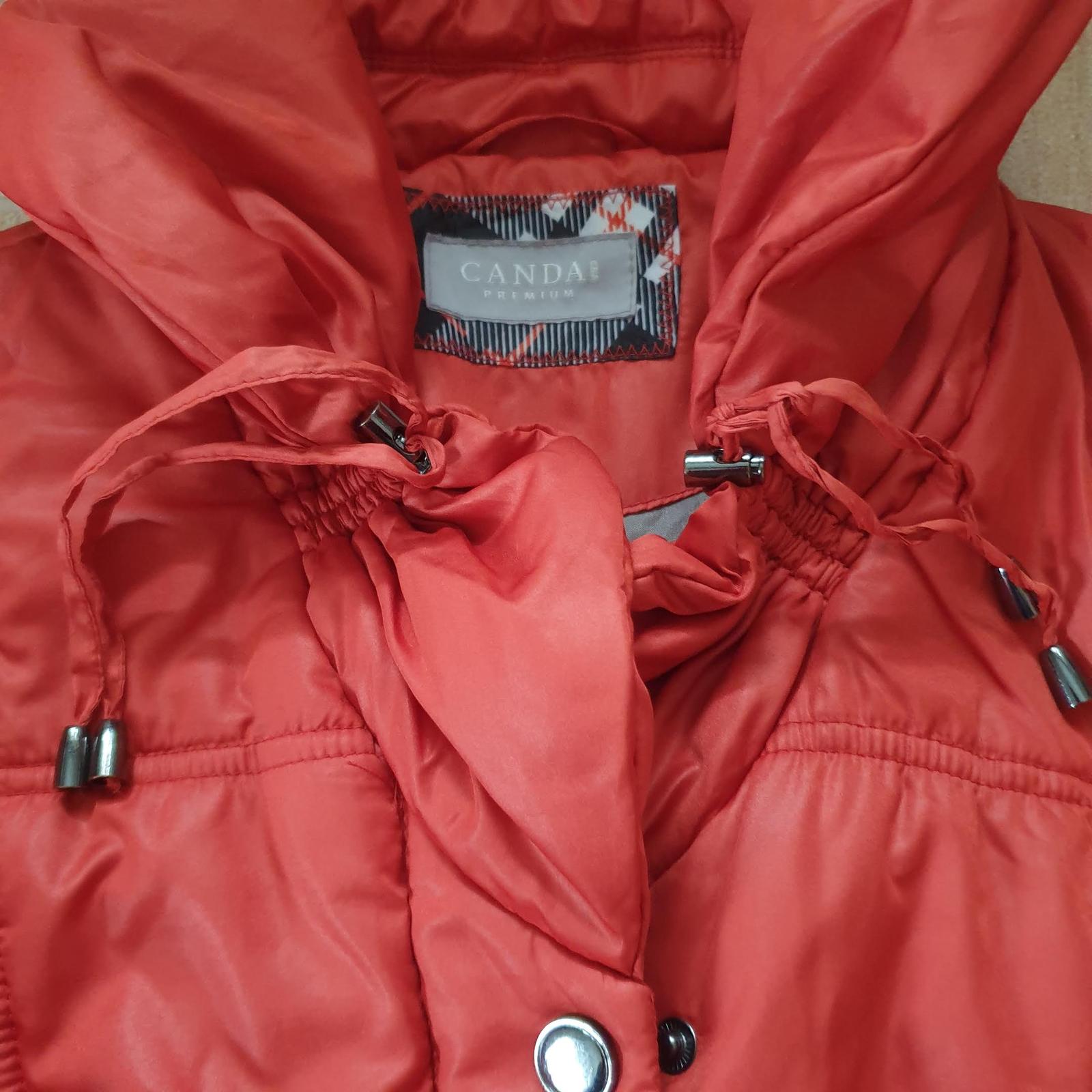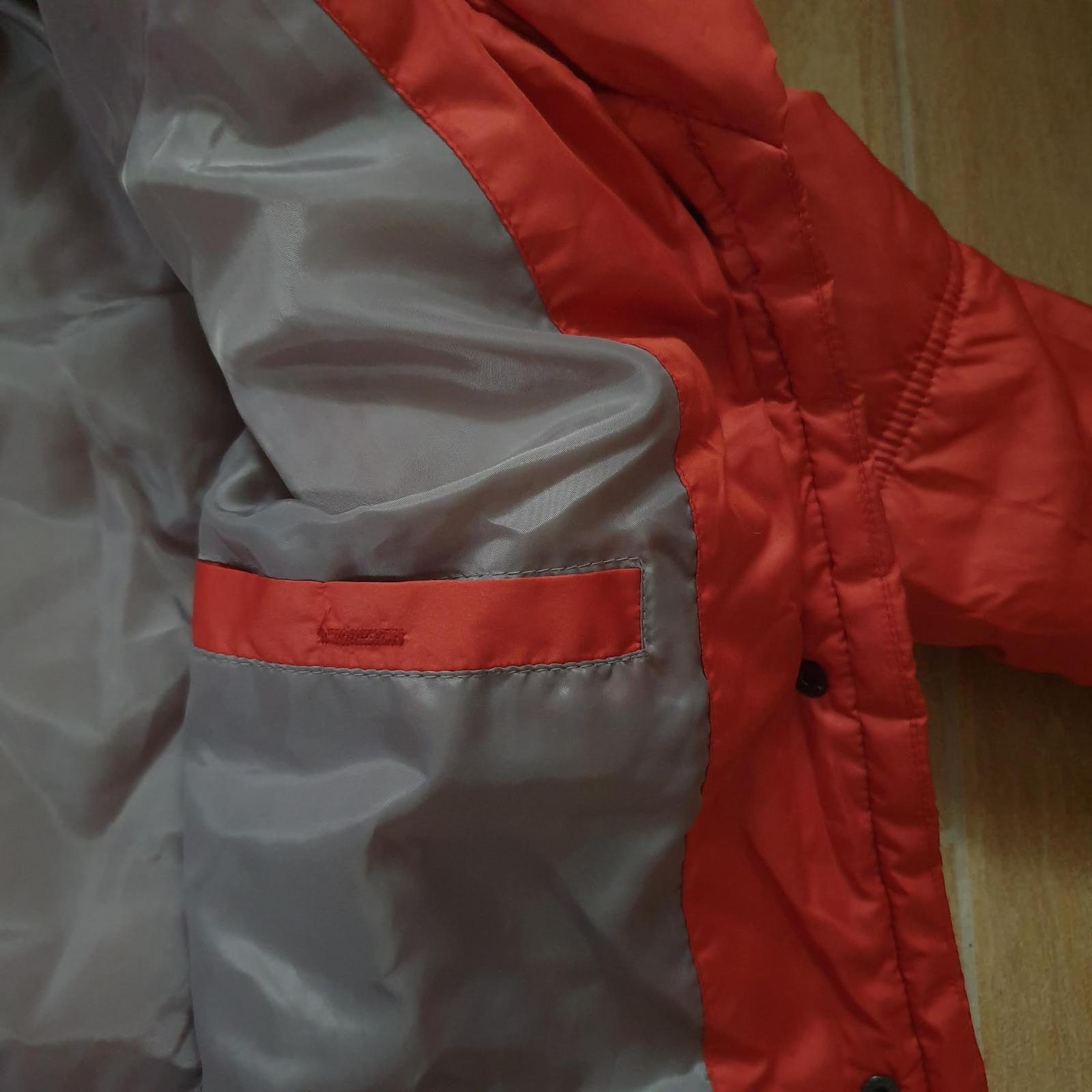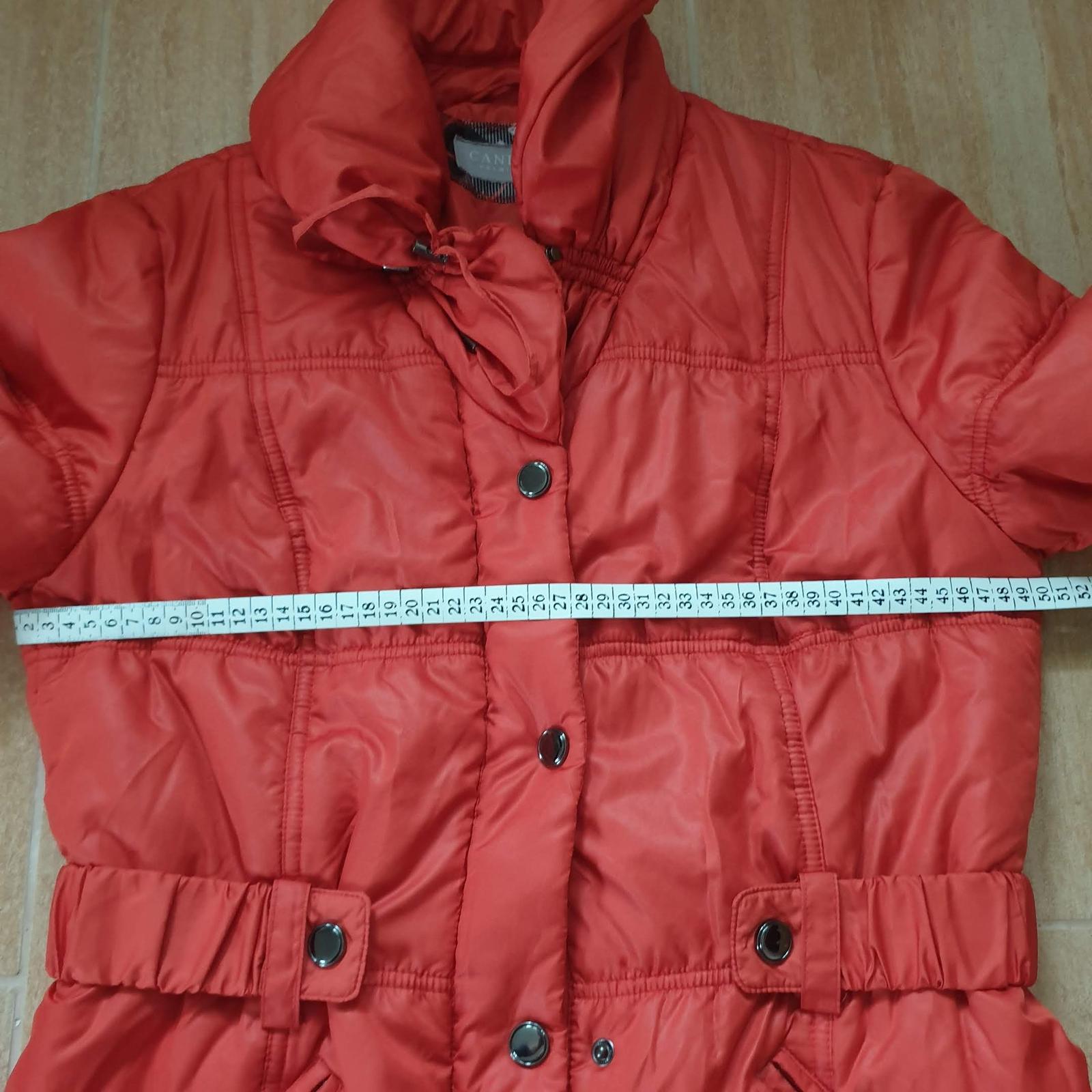 Nenosená, ľahká, ale teplá, pekné detaily na límci. Farba je niečo medzi tmavou oranžovou a tehlovou. Miery na foto.
