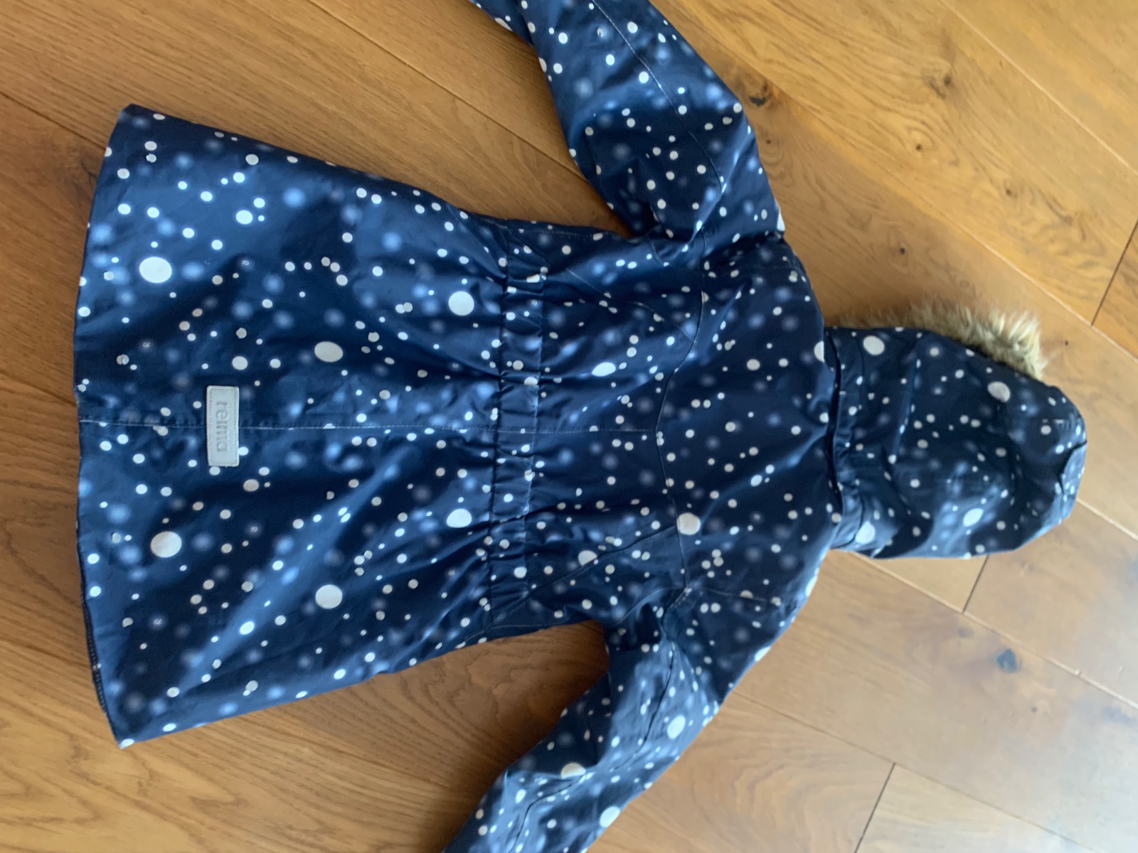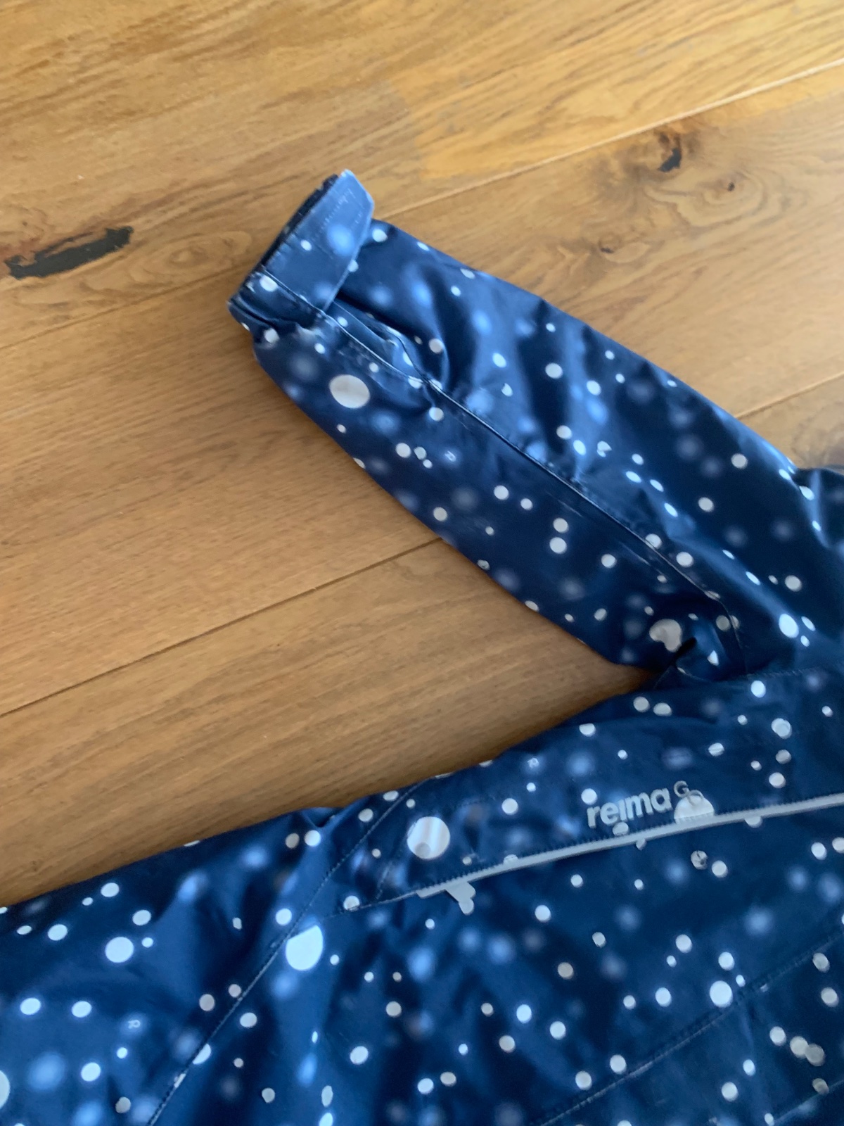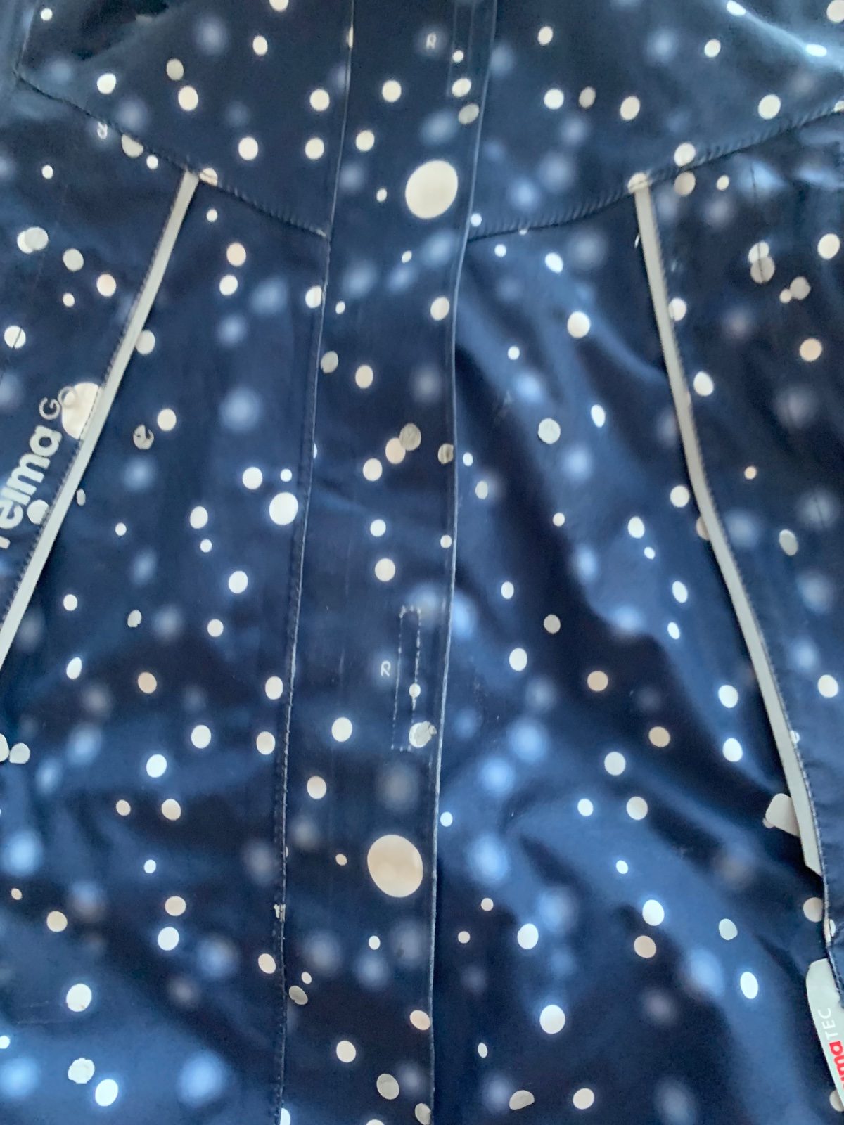krásna predĺžená bunda od Reima, všetky tie sivé bodky sú reflexné, bunda je veľmi bezpečná, nesie známky nosenia na lemoch a rukávoch, čo je podrobne zdokumentované, rozhodne je stále vo veľmi slušnom stave,