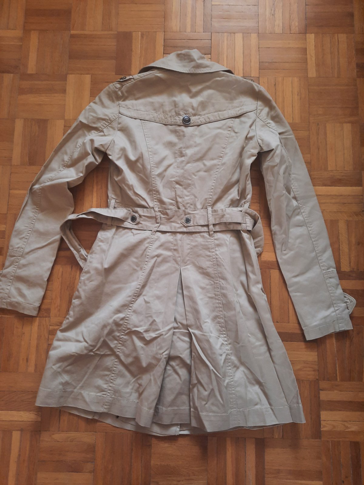 Krásny dámsky prechodný, podšitý trenčkot s opaskom. Je v top stave, oblečený 1x. Vačky sú vpredu. Detailne vypracovaný. Veľmi príjemný materiál.