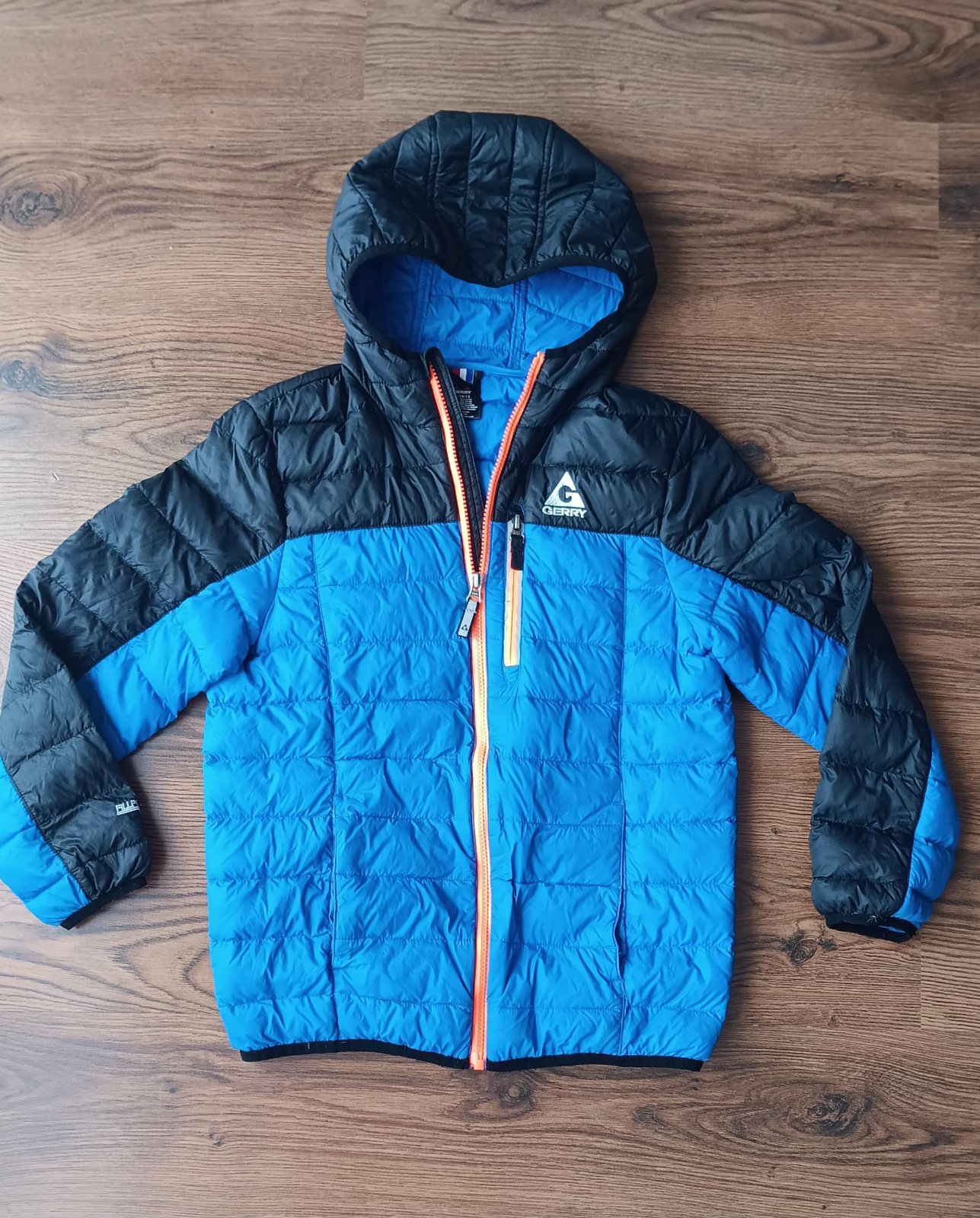 Zachovalá tenšia prešívaná ľahučká bunda zn. Gerry, bez poškodení dve vrecká vpredu v oblasti pása a jedno bocné na hrudi na zips. Celkova dlžka od pleca 57 cm, sírka 45 cm, rukav od pleca 51 cm