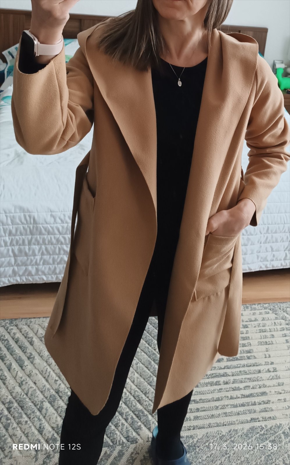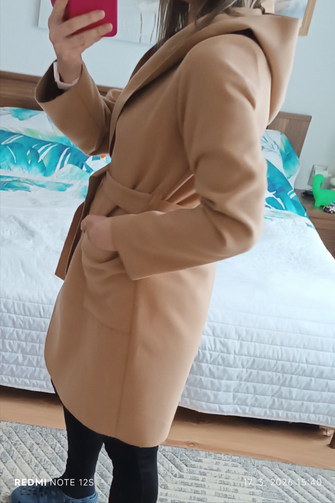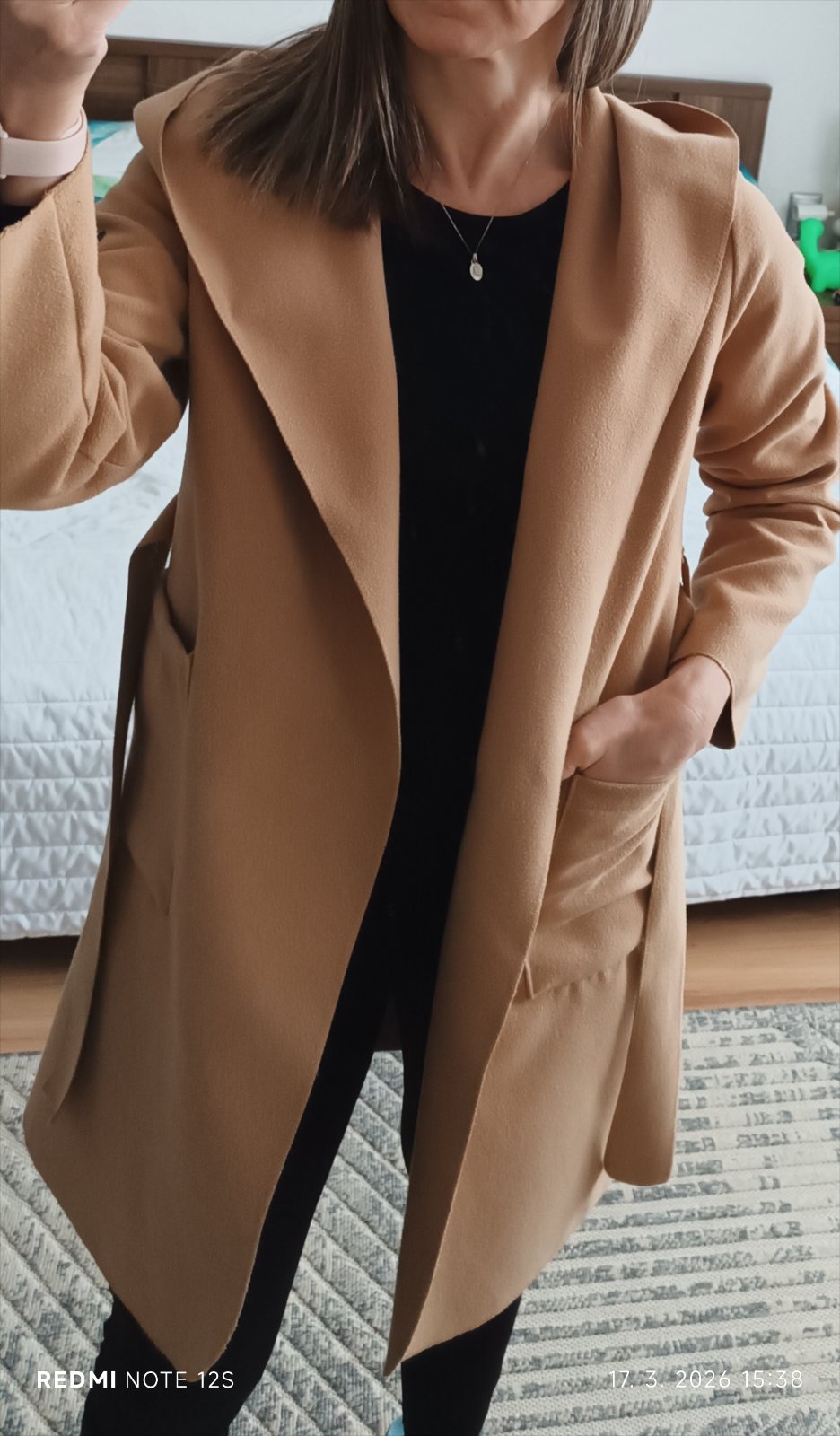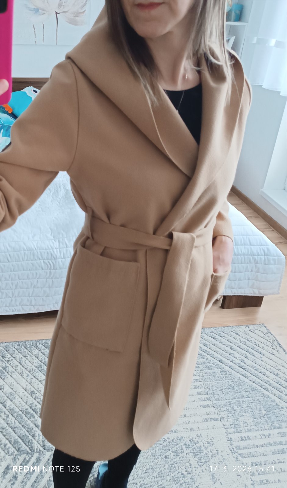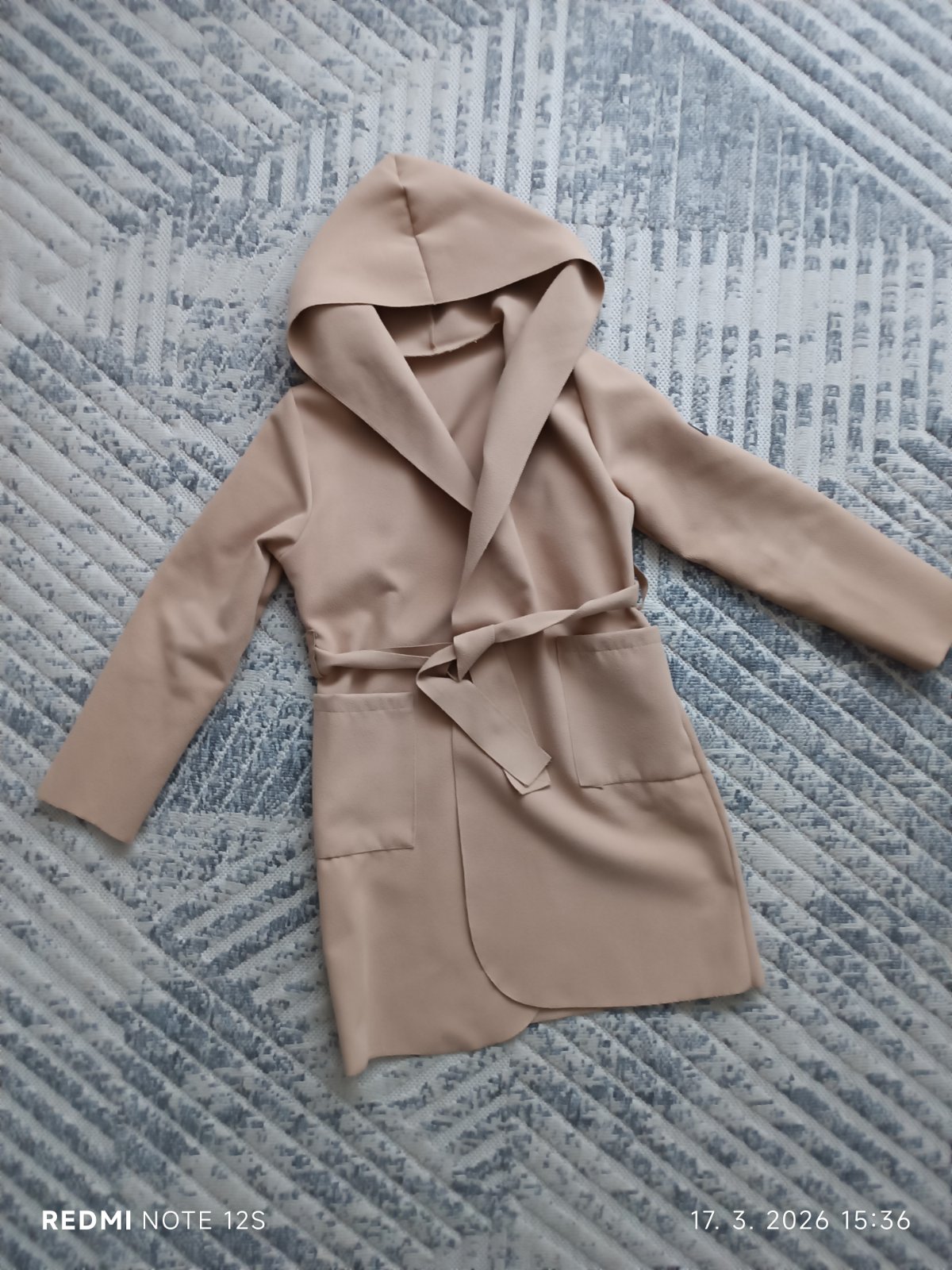 Nosený, pohodlný s kapucňou, na zaviazovanie, má minižmolky