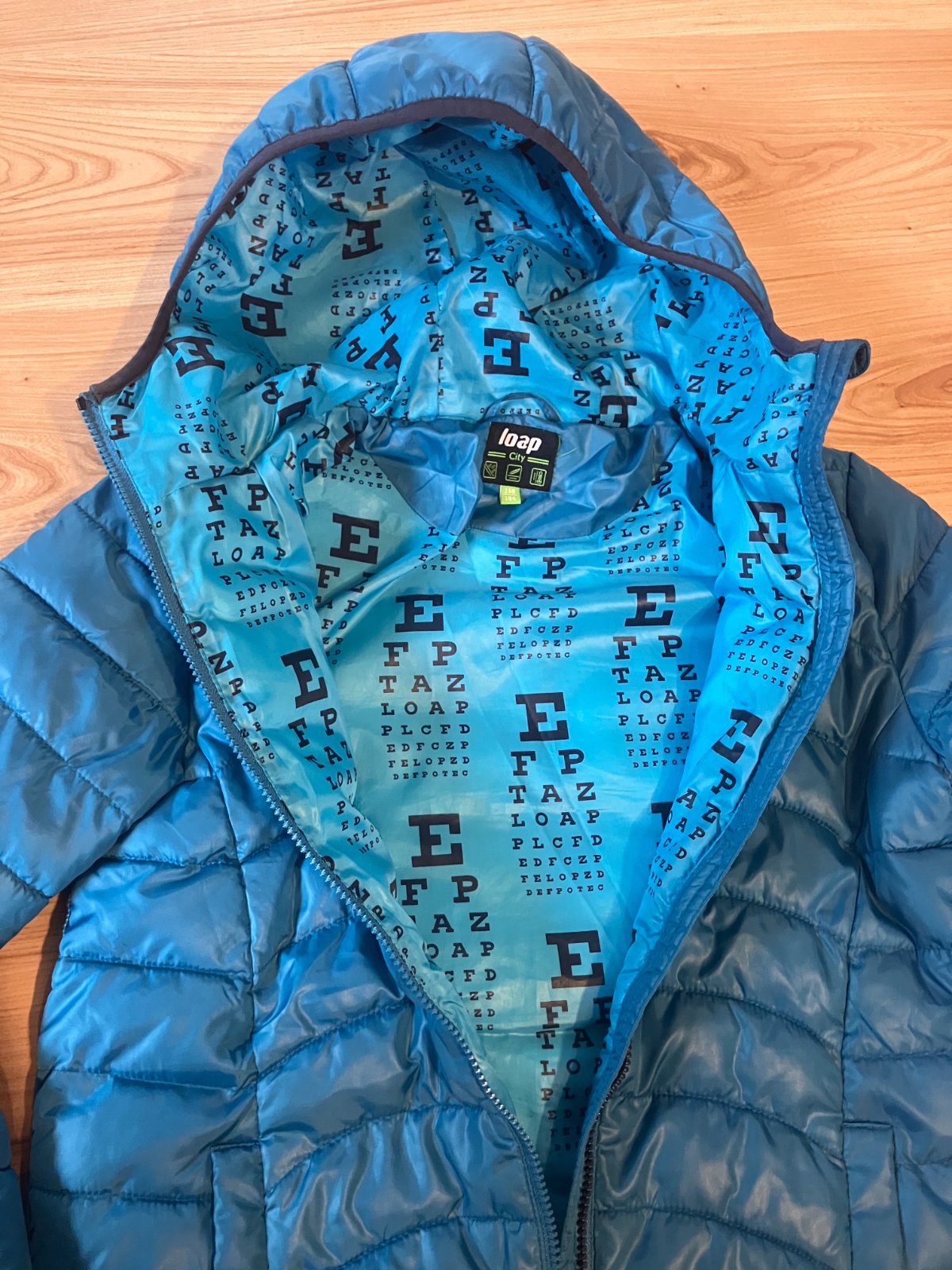 Chlapčenská lyžiarska bunda č. 158/164 zn. Loap, snežný pás, vnútorné patenty na ruky, vrecko na rukáve na permanentku, gumičky na rukávoch na rukavice, reflexné prvky, kapucňa napevno. Na rukávoch...