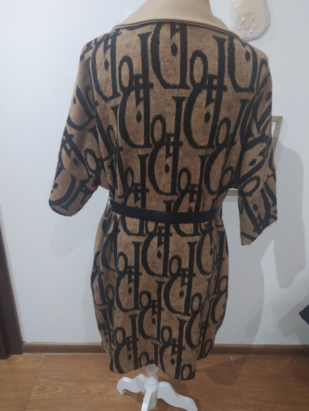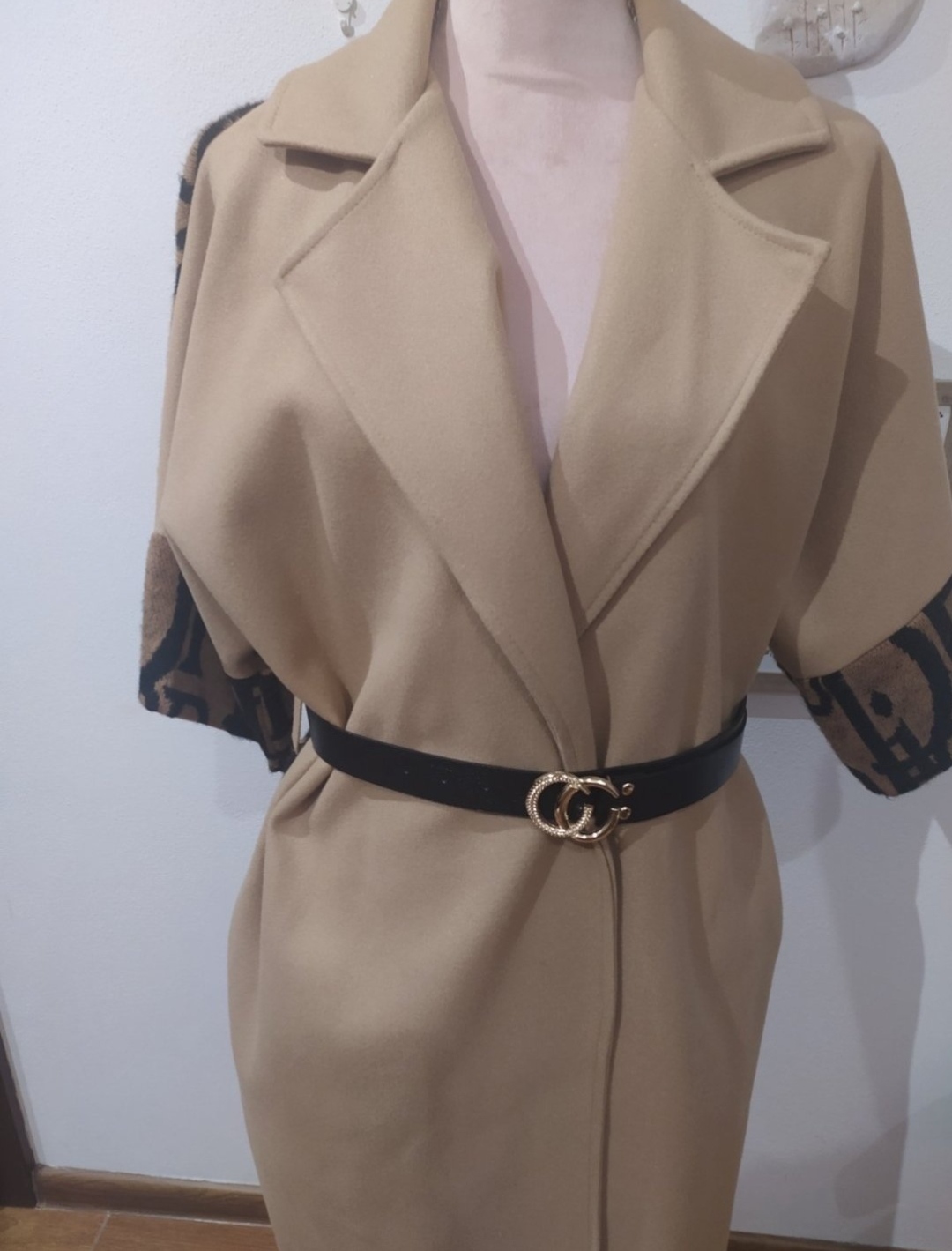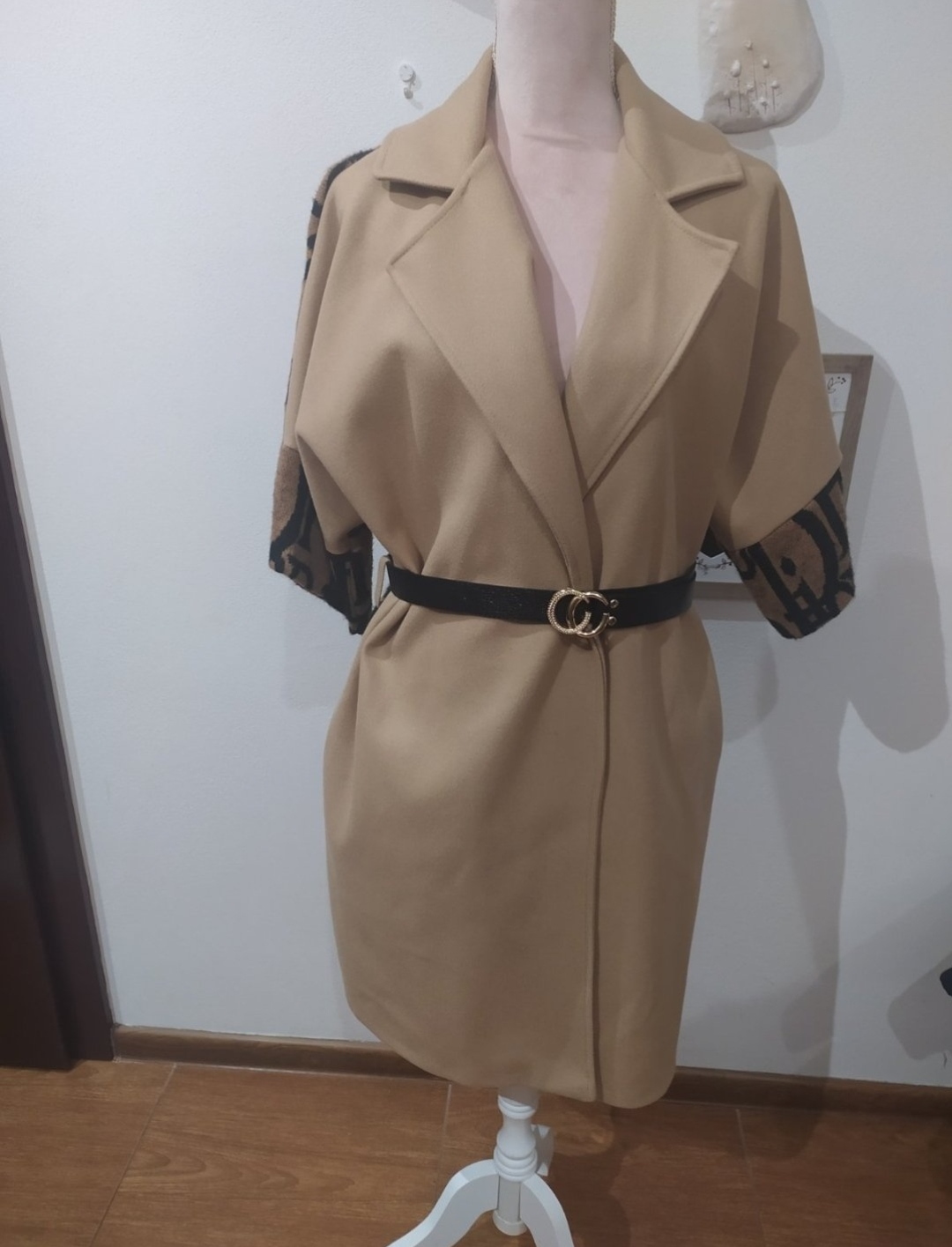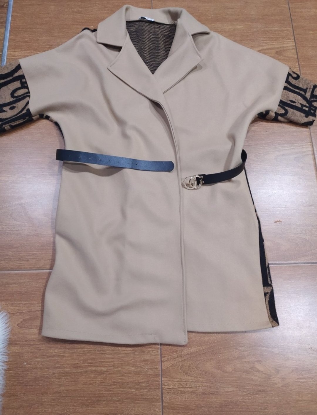 Prechodný štýlový kabátik,top stav, oblečeny 1x,kombinovaný materiál flaus +uplet,bez zapínania iba na opasok.Vel Uni vhodné pre veľ S-L