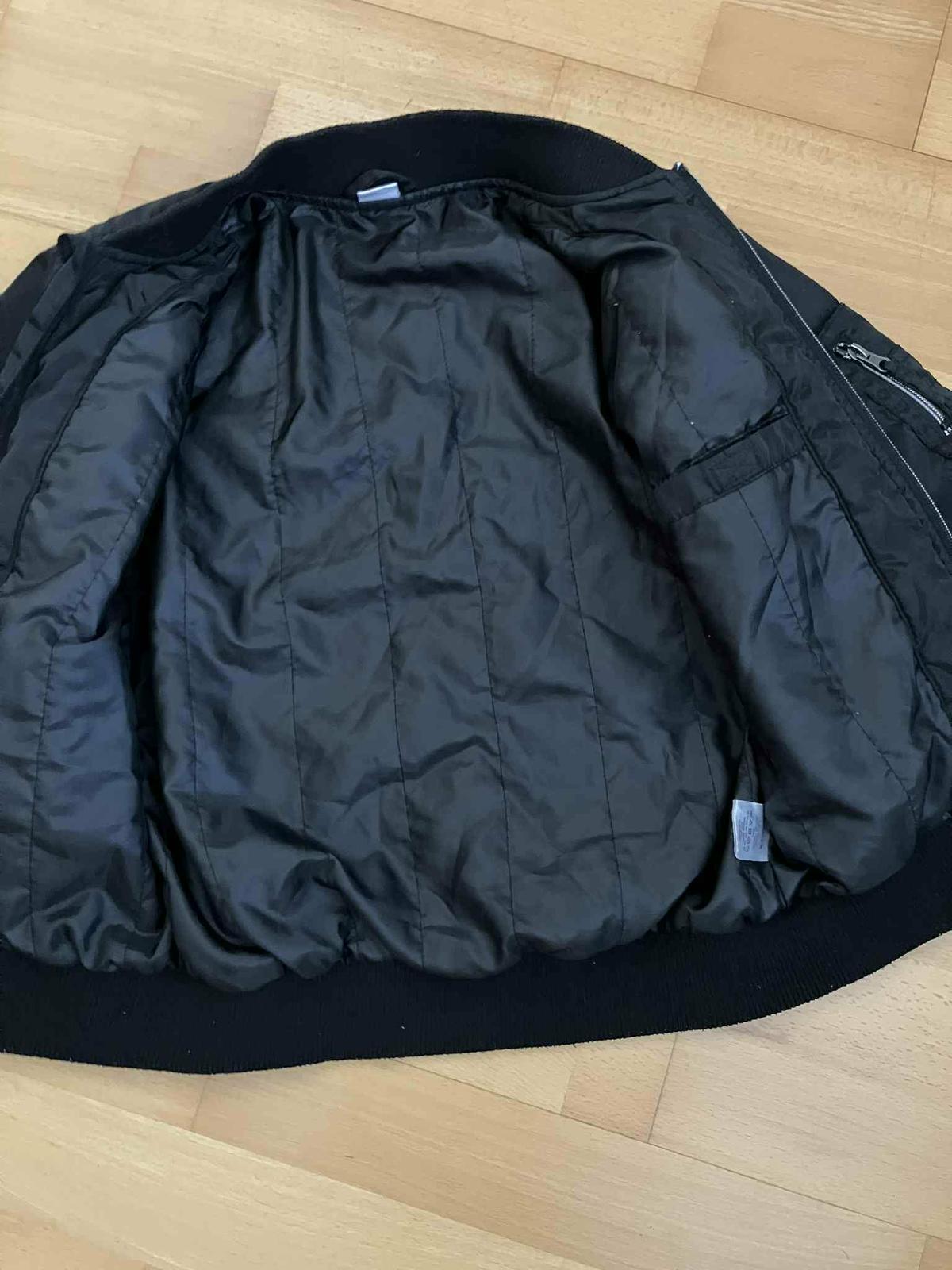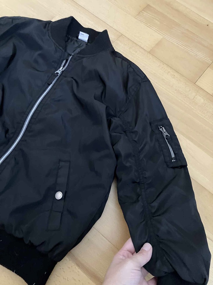 V top stave. Oblečená asi 5x . Na studenú jeseň výborná . Je to typ bomber. Pekne sedí . Rukávy aj spodok sú do gumy. Dĺžka 49, šírka 44, rukavíc ramena 46.