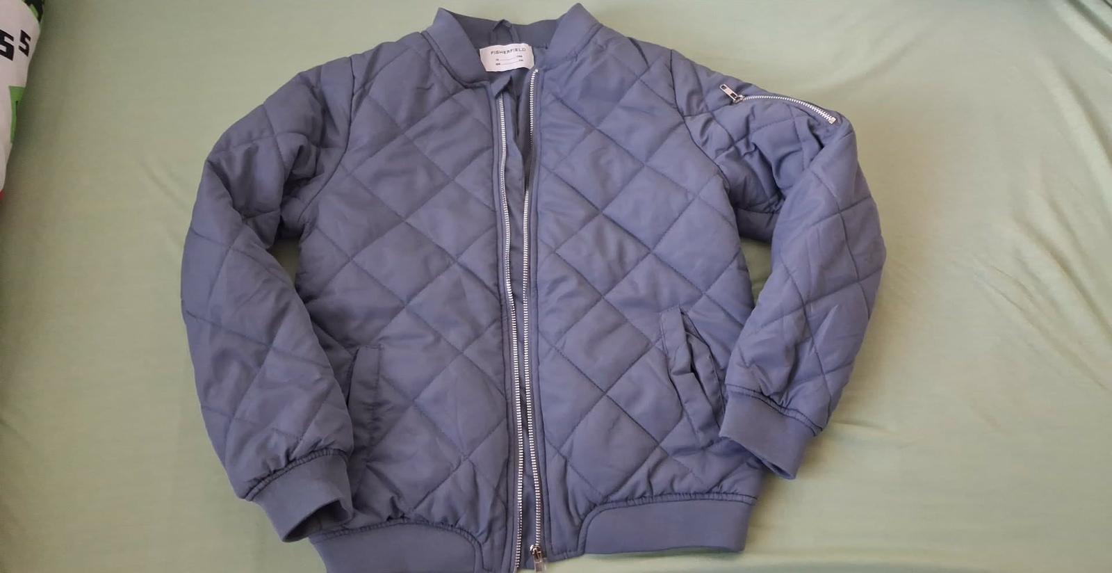 prechodná prešívaná bombera ,,Fisherfield", GATE, veľkosť 158, rukáv 57 cm, dlžka vetrovky 58 cm, farba šedo-modrá, top stav, cena 15 €