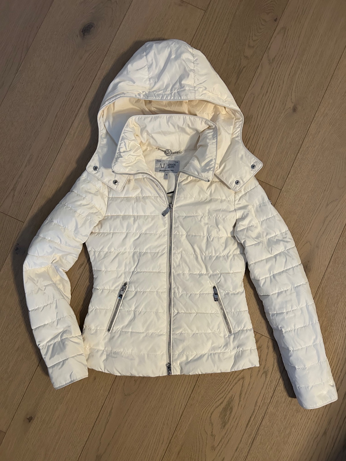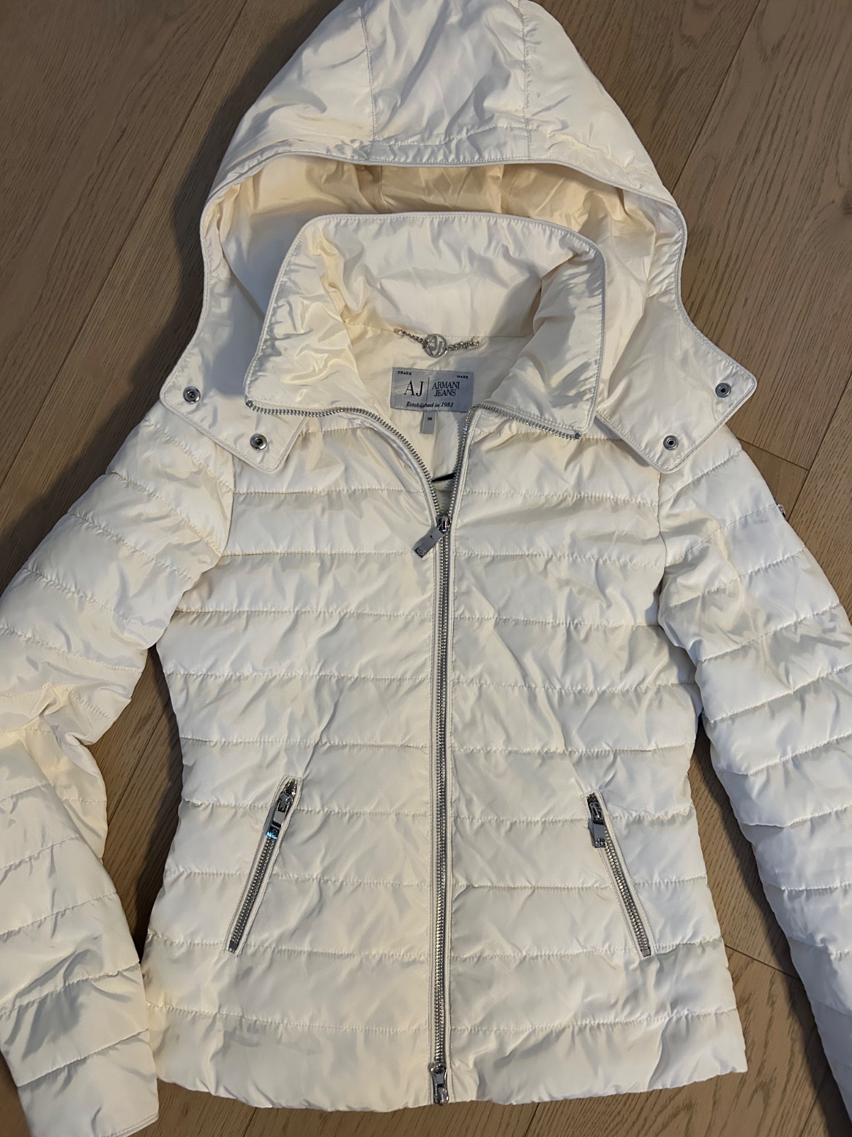 Armani Jeans bunda prechodná s kapucňou , viete ju nosiť na jeseň , zimu aj na jar, veľkosť IT38 naša 34, 100% nosená , top stav, opratá a naimpregnovaná, pod patuchami 45 cm, dĺžka rukáva od ramena nadol 61 cm, dĺžka bundy od ramena nadol 58 cm, pôvodná cena 299€, moja pevná cena 90€, možný odber v Ba, poštovné, kľudne píšte sms, volajte 0905215552