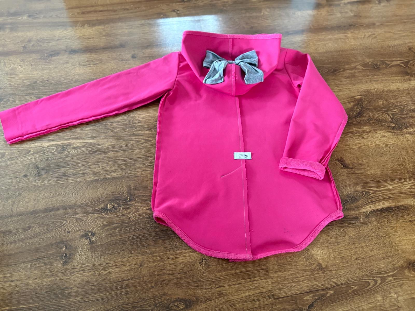 Krasny cyklamenovy kabatik. Na zadnej strane je flak. Vidno na foto.