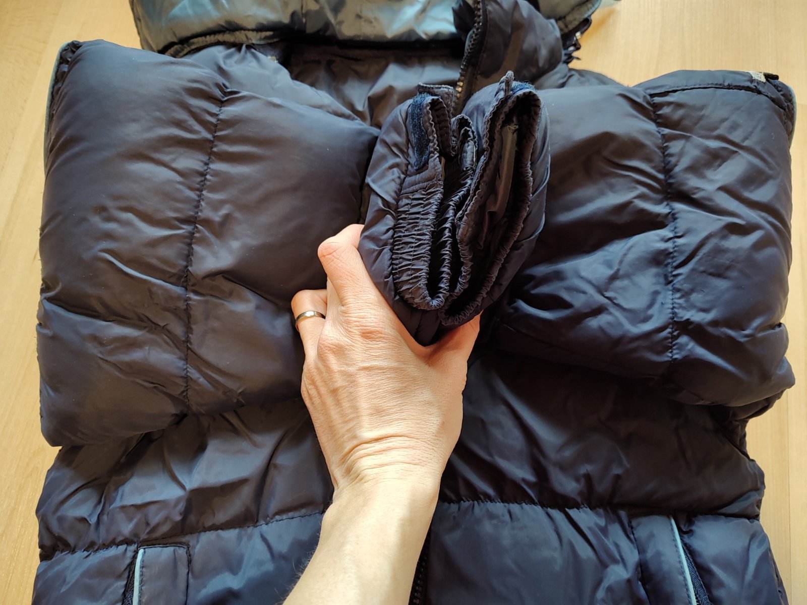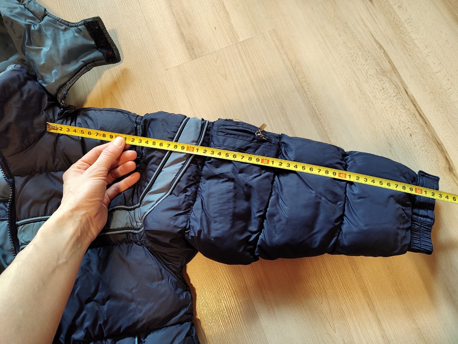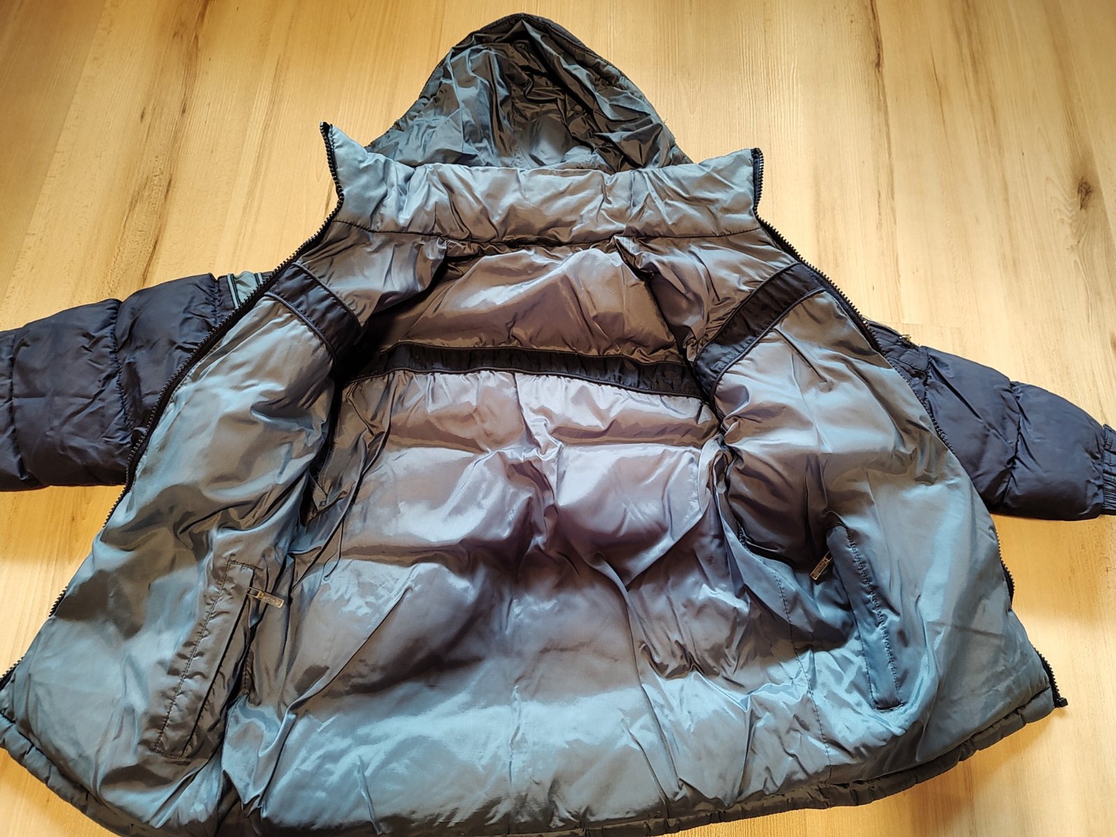 nosená, ale nepoškodená zimná (veľmi teplá) bunda. Nemá žiadne viditeľné známky nosenia. Kapucňa je odnímateľná.