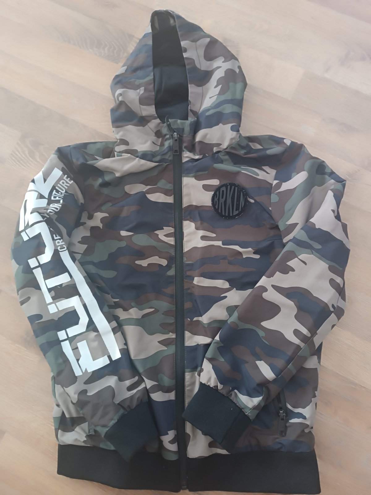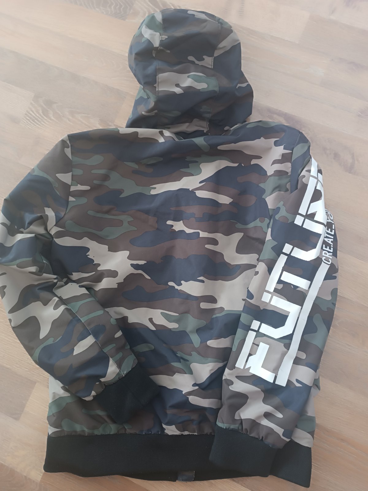 Prechodná chlapčenská bunda, podšitá, na zips, s kapucňou a s vreckami.