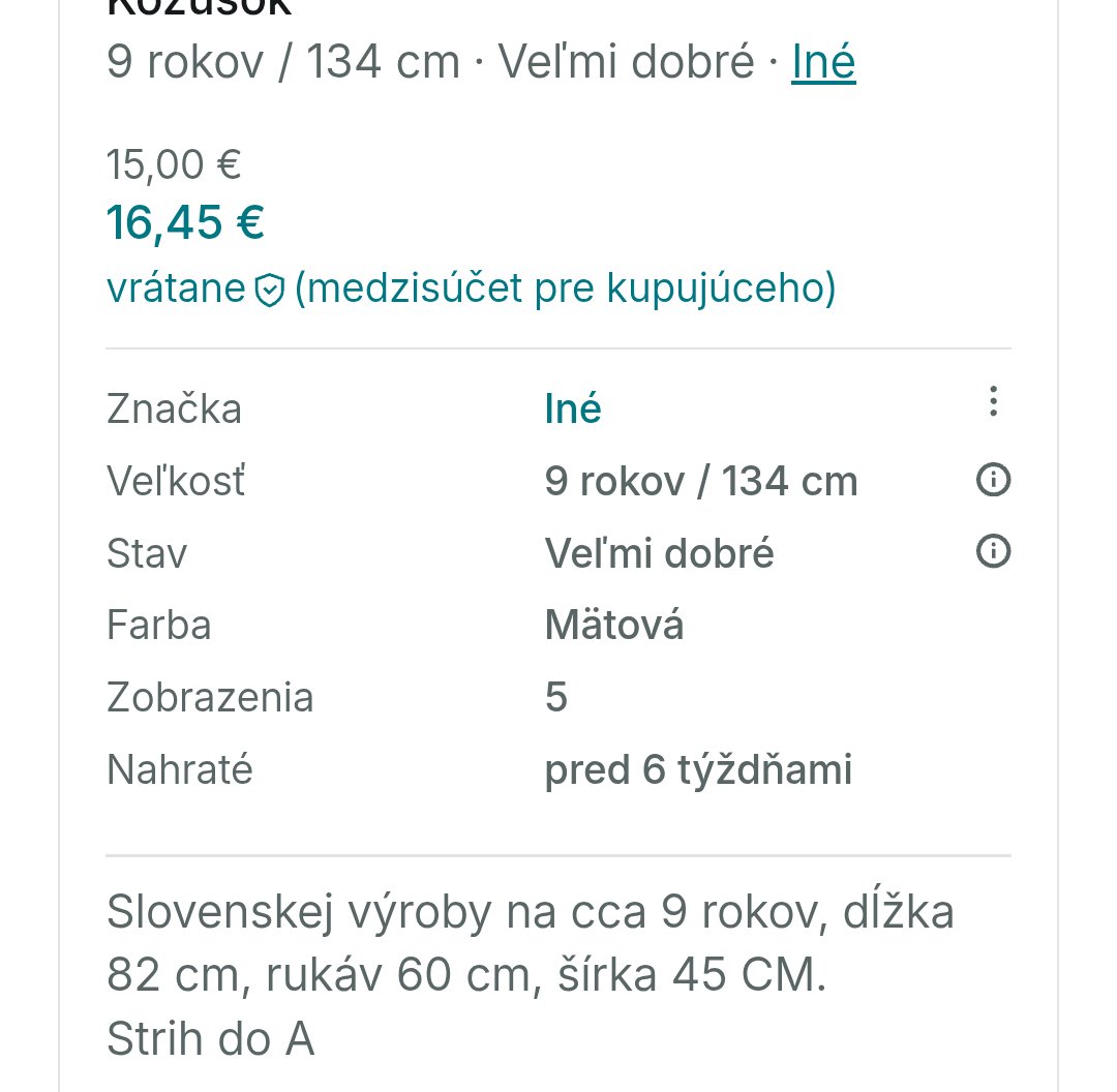 Predávam použité, ale kvalitné veci v dobrom stave. Niektoré oblečené minimálne. Tovar posielam po pripísaní dohodnutej sumy na môj účet poštou - obyčajne alebo doporučene podľa taríf SP. Prosím, pozrite si aj ostatné moje inzeráty. Verím, že si vyberiete a všetci budeme spokojní :-) číslo účtu v tvare IBAN SK8909000000000252915813