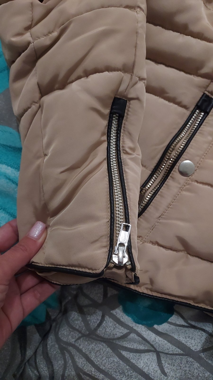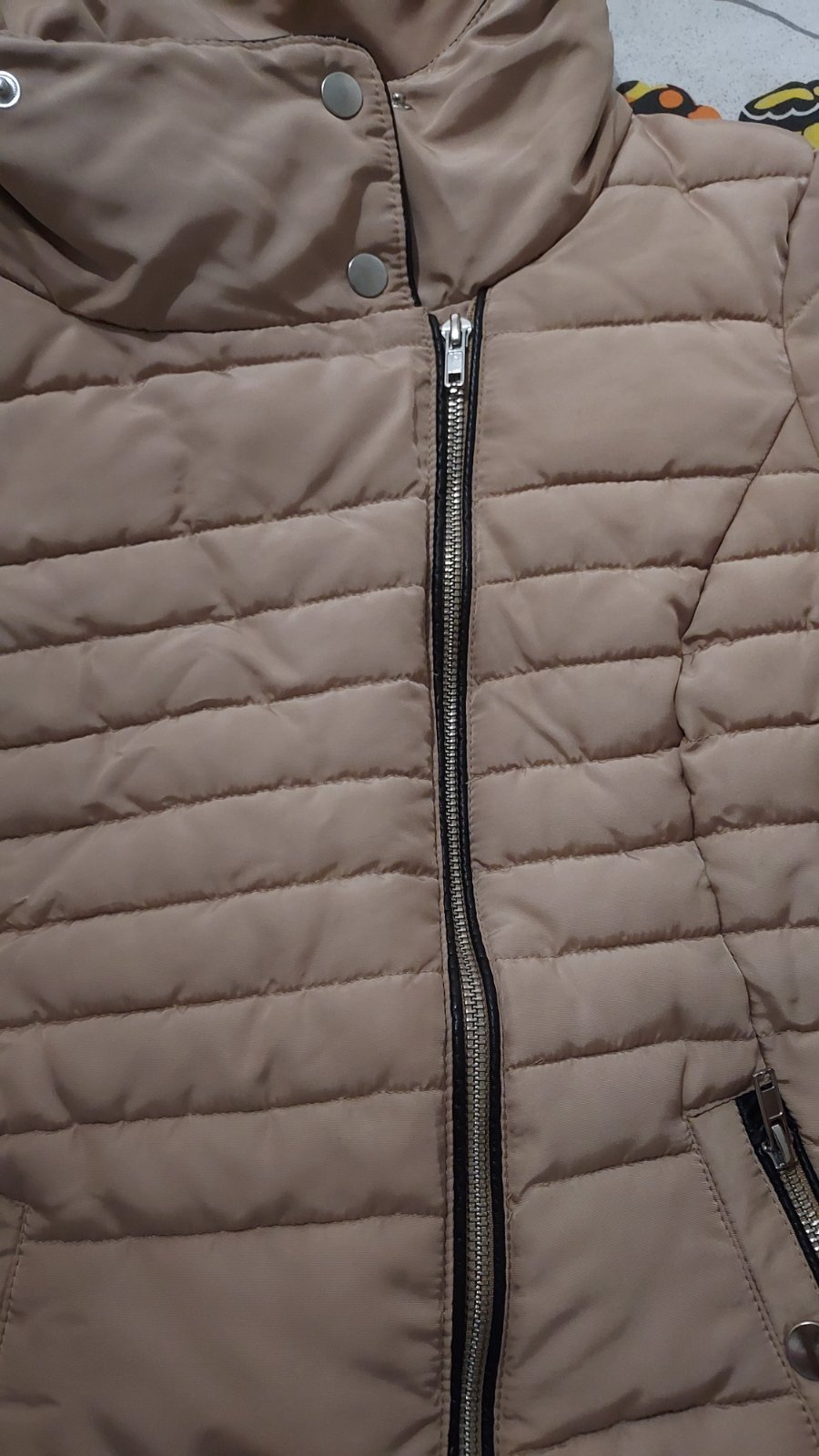 koženkova bunda nenosena, cez prsia 43cm, dlžka 60cm rukav 64cm