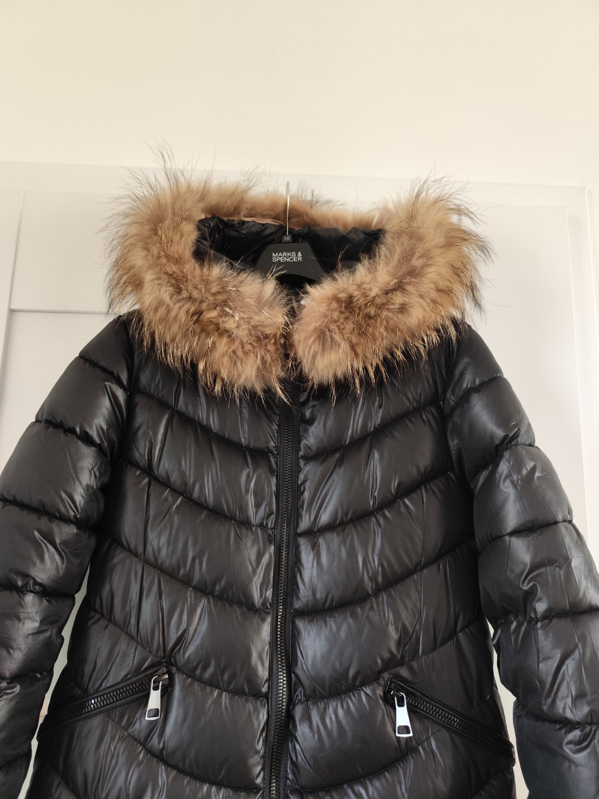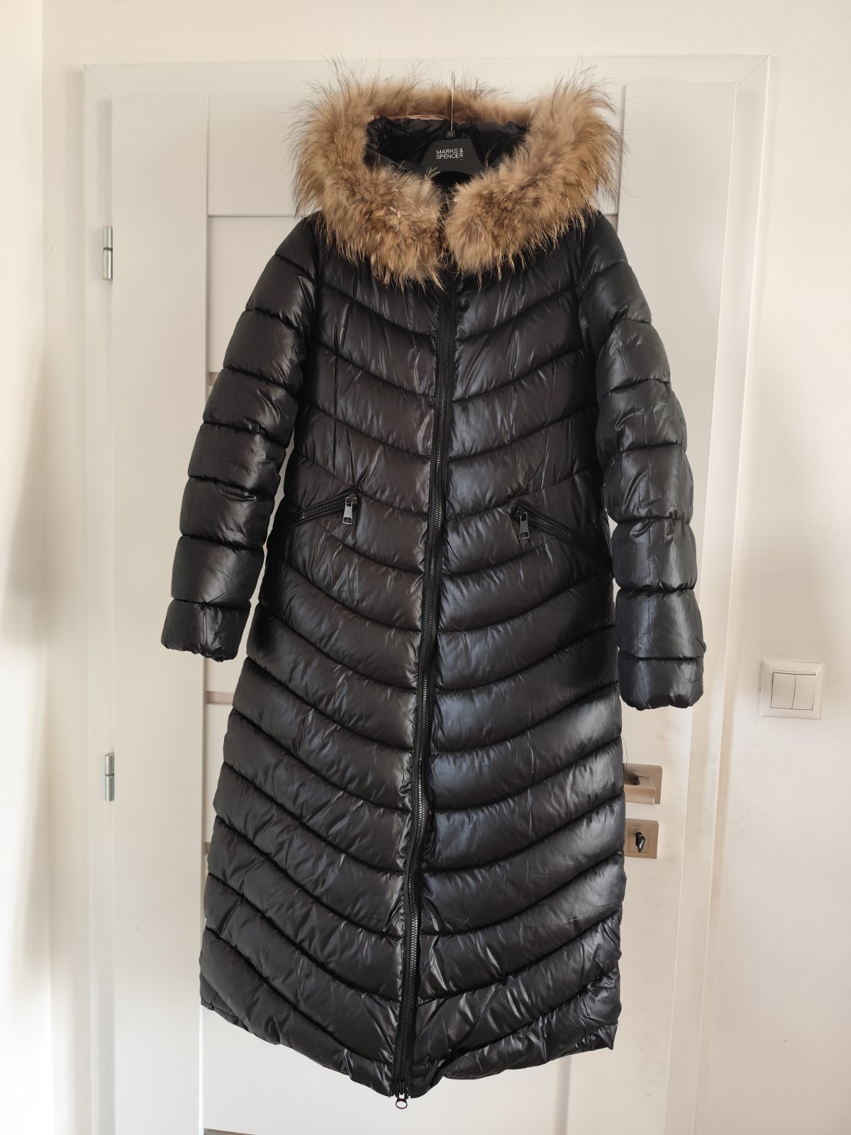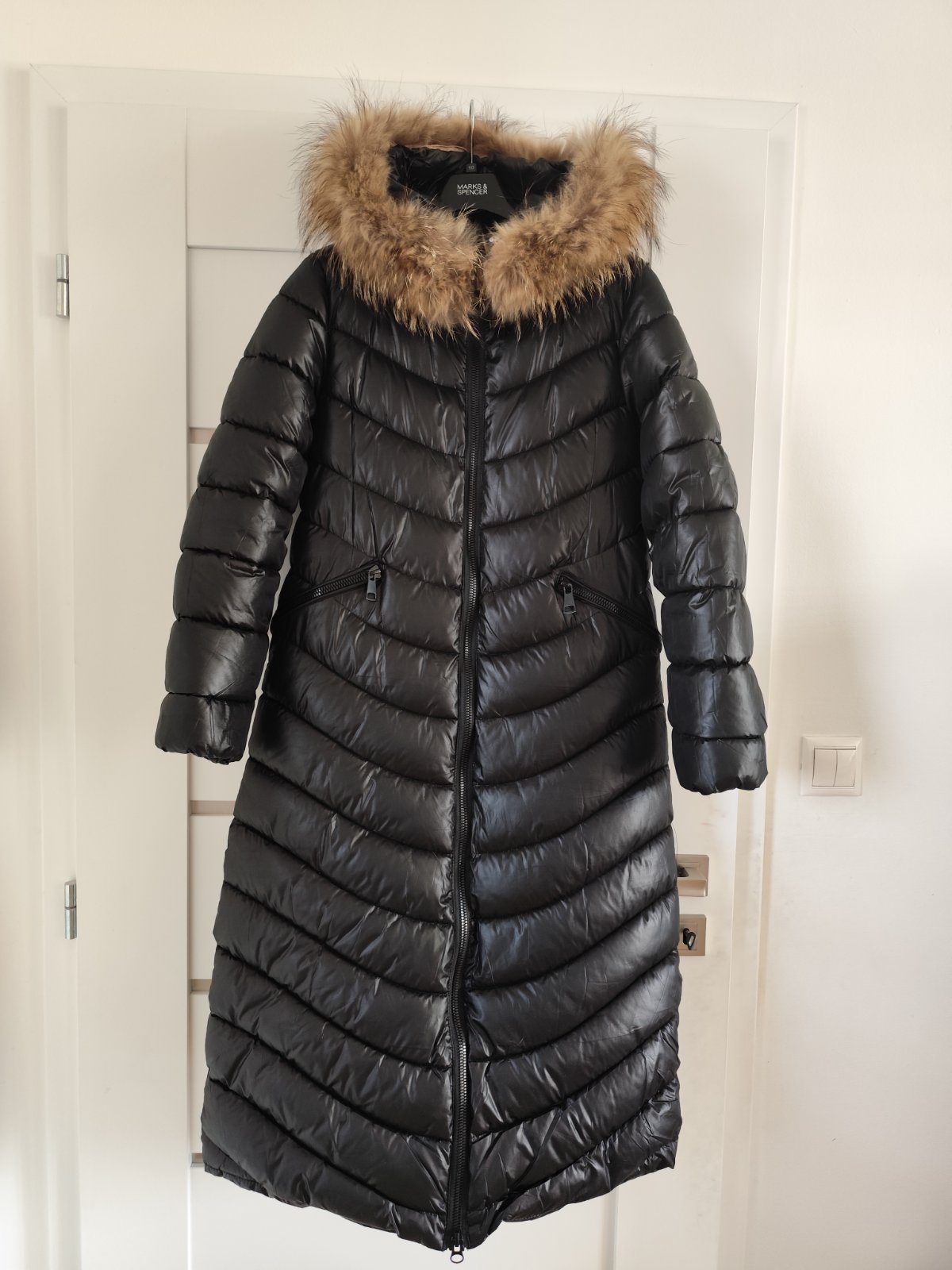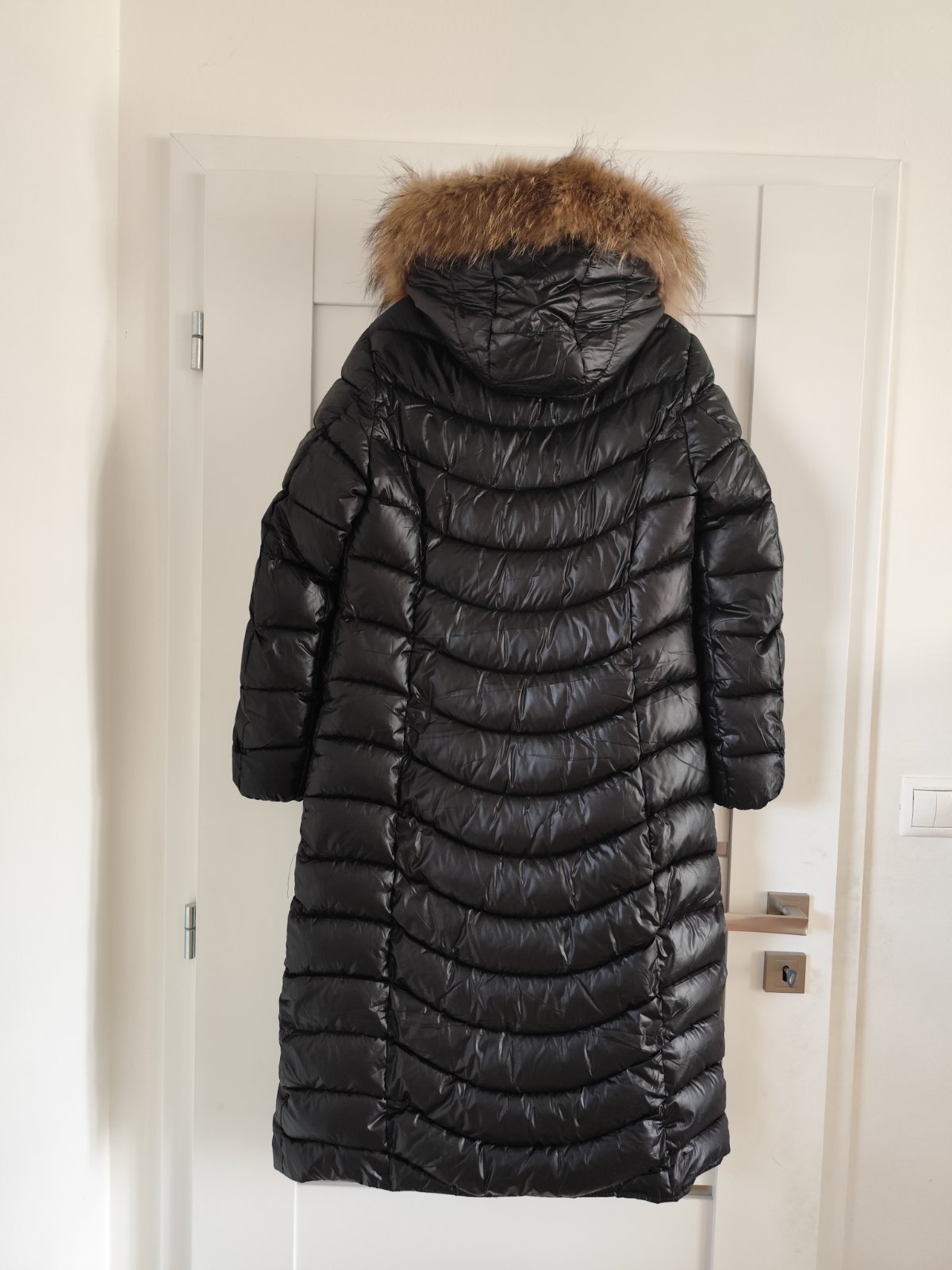 Dlha zimna bunda s pravou kozusinou velkost S (sedi tak S/M). Ja nosim XS a je mi velka, preto ju posuvam. Na kapucni prava kozusina - da sa odopnut. Bunda je ako nova.