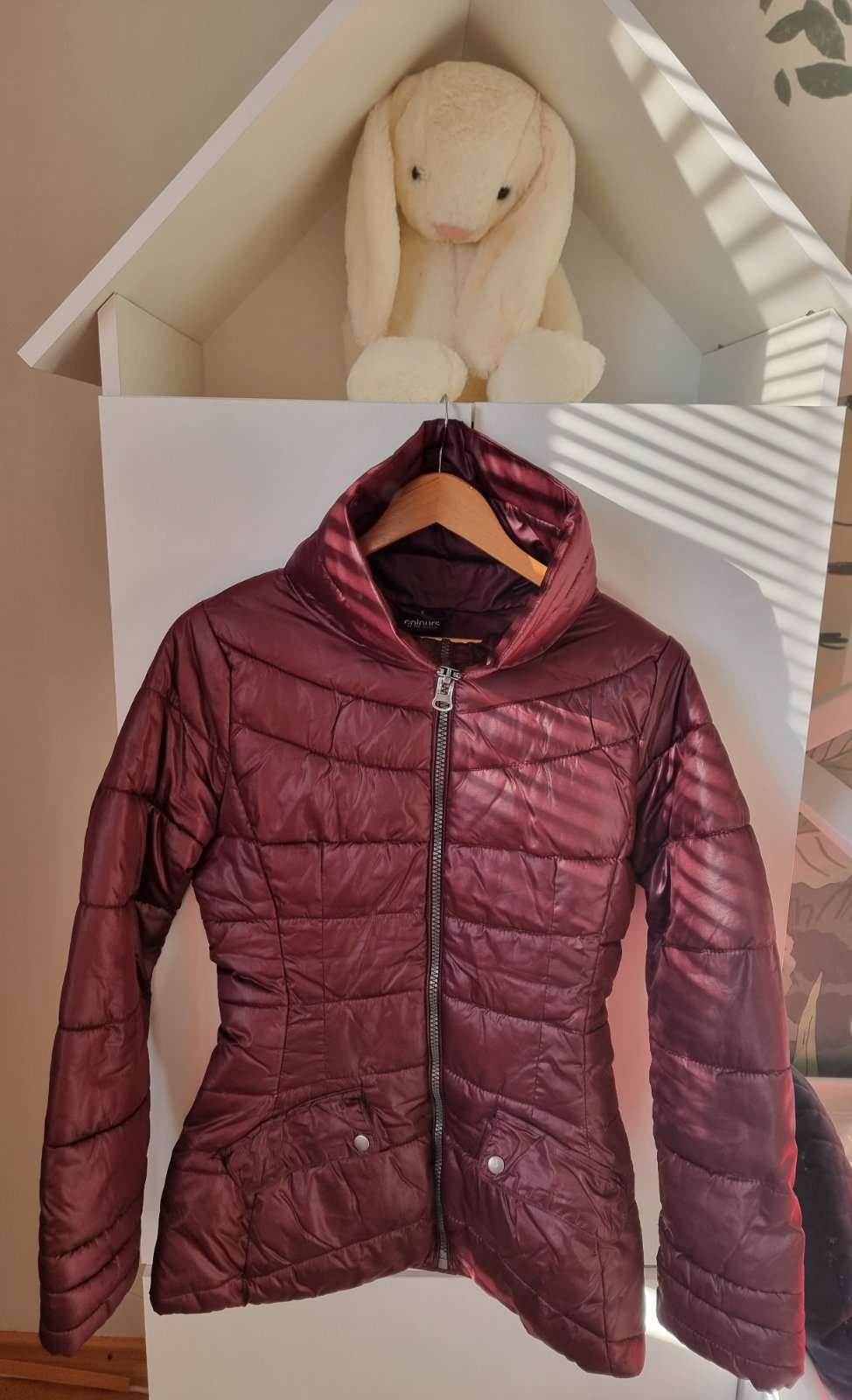 Teplá ľahká bunda, bordovej farby , trochu lesklá, v dobrom nosenom stave bez poškodenia