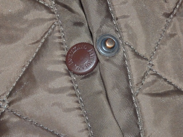 Luxusná tmavohnedá bunda so zapínaním na cvočky, prešívaná, vzadu 2 rozparky, materiál 100% nylon, super stav.