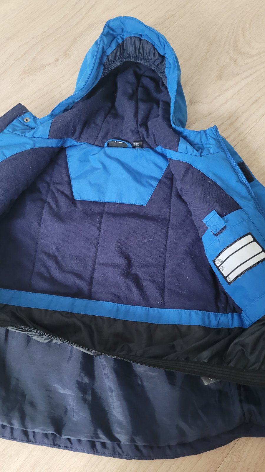 Posúvam softshellovú bundu. Synova obľúbená, vynosil ju pomerne dlho. Zvnútra mierne žmolky, trošku ošuchnuté rukávy, reflexné prvky. Všetko v galérii. Verím, že ešte poslúži. Sedí na užšiu, vyššiu...