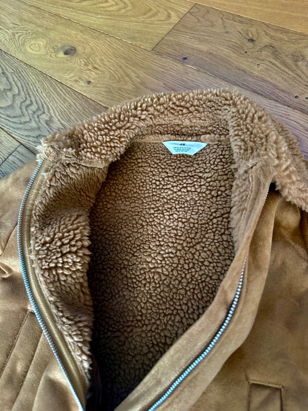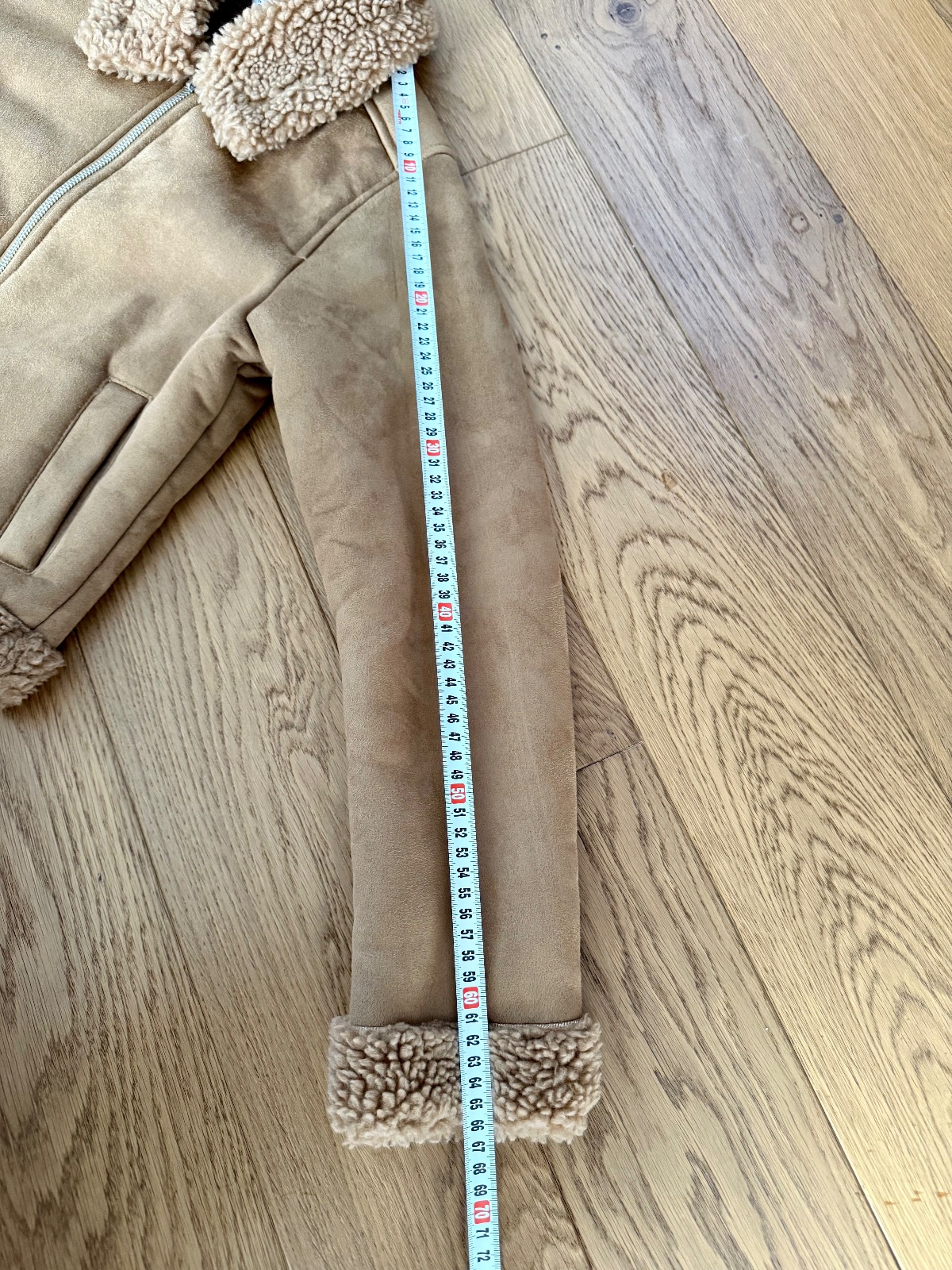 Bunda s golierom, manžetami, spodným lemom z mäkkého plyšu. Zapínanie na zips a šikmé predné vrecká. Top stav