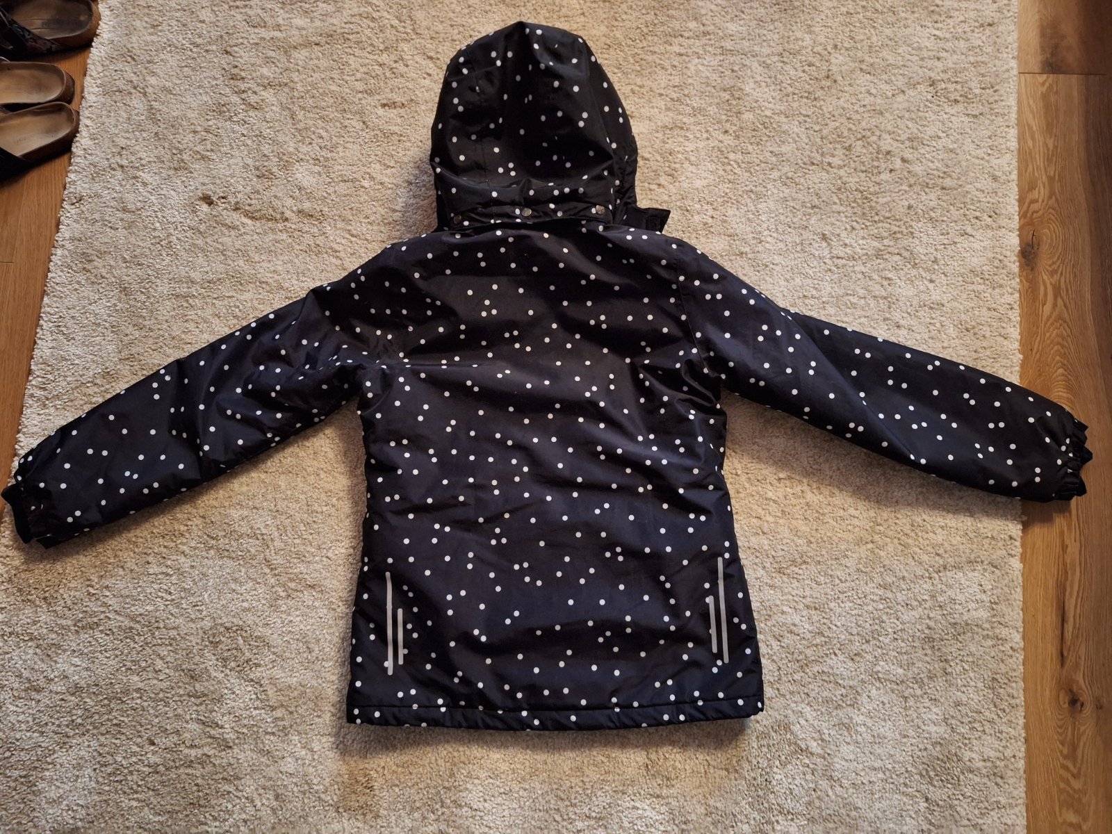 Je vodeodolna a vetruvzdorna. Bez poskodeni a zavad. Skoro ako nova. Dcera uz z nej vyrastla.