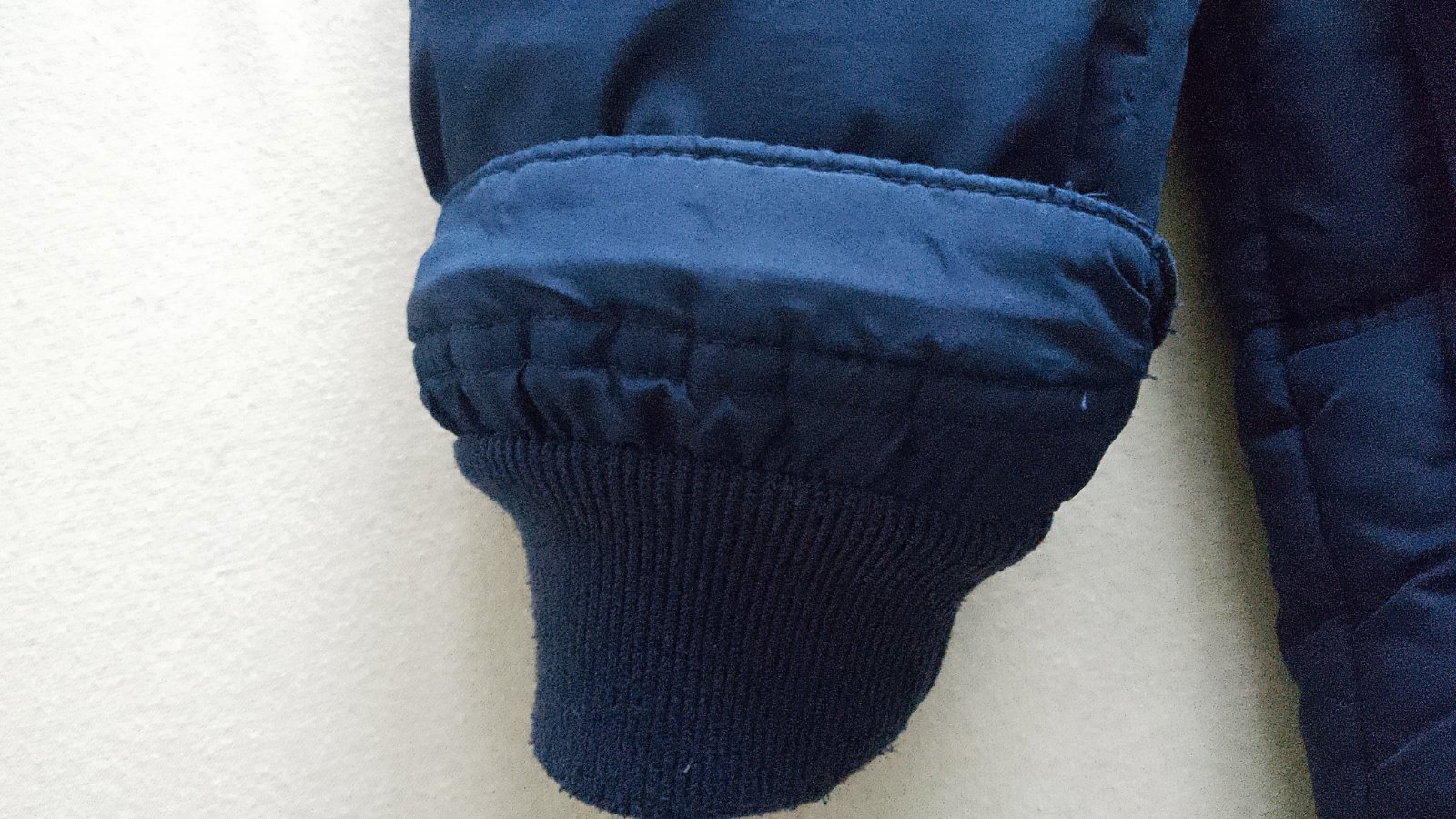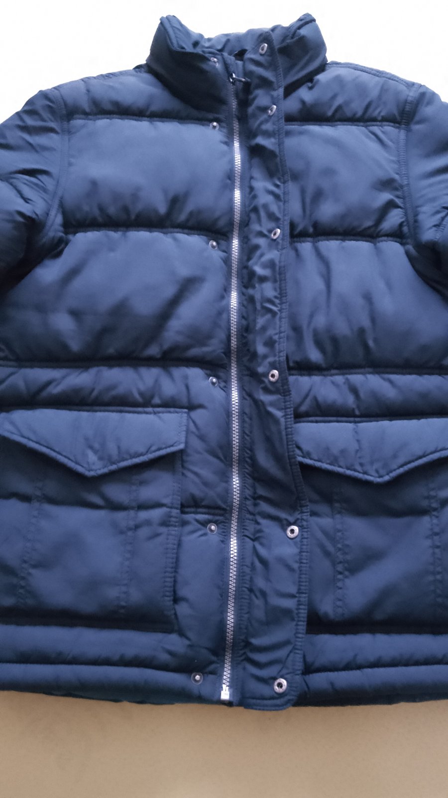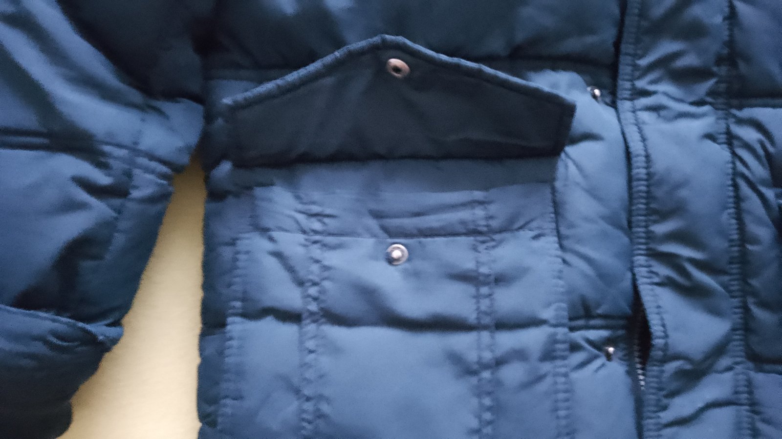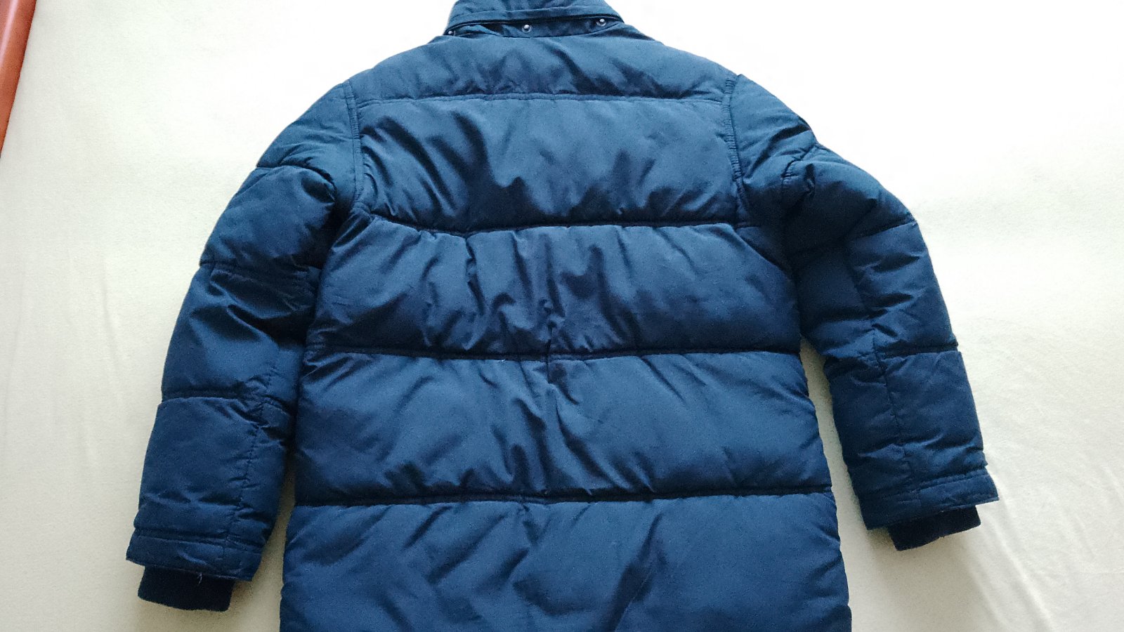 V zachovalom stave, bez poškodení, bez kapucne , vzadu pod golierom je slabo posunutá výplň, nosenie to neovplyvňuje.