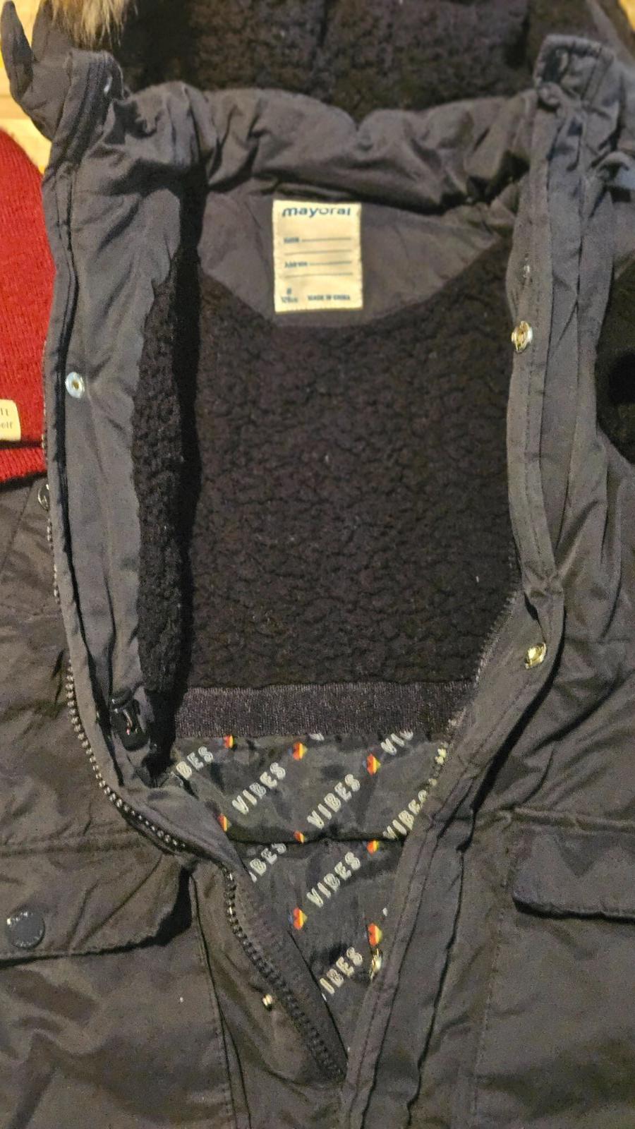 V peknom noenom stave Mayoral bunda podsita kozudinkou odopinayelna kapucka.Nosenie vidoet trochu na zipse prip.cvockoch,je v peknom.stave.cena je 16 eur plus posta,ciapoclu pribalujem.