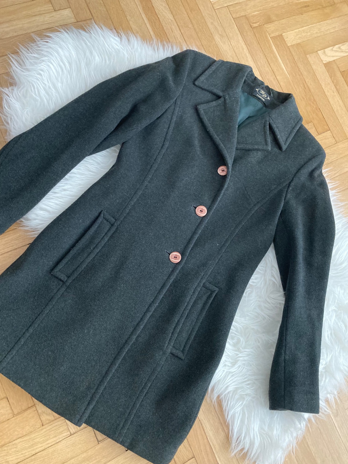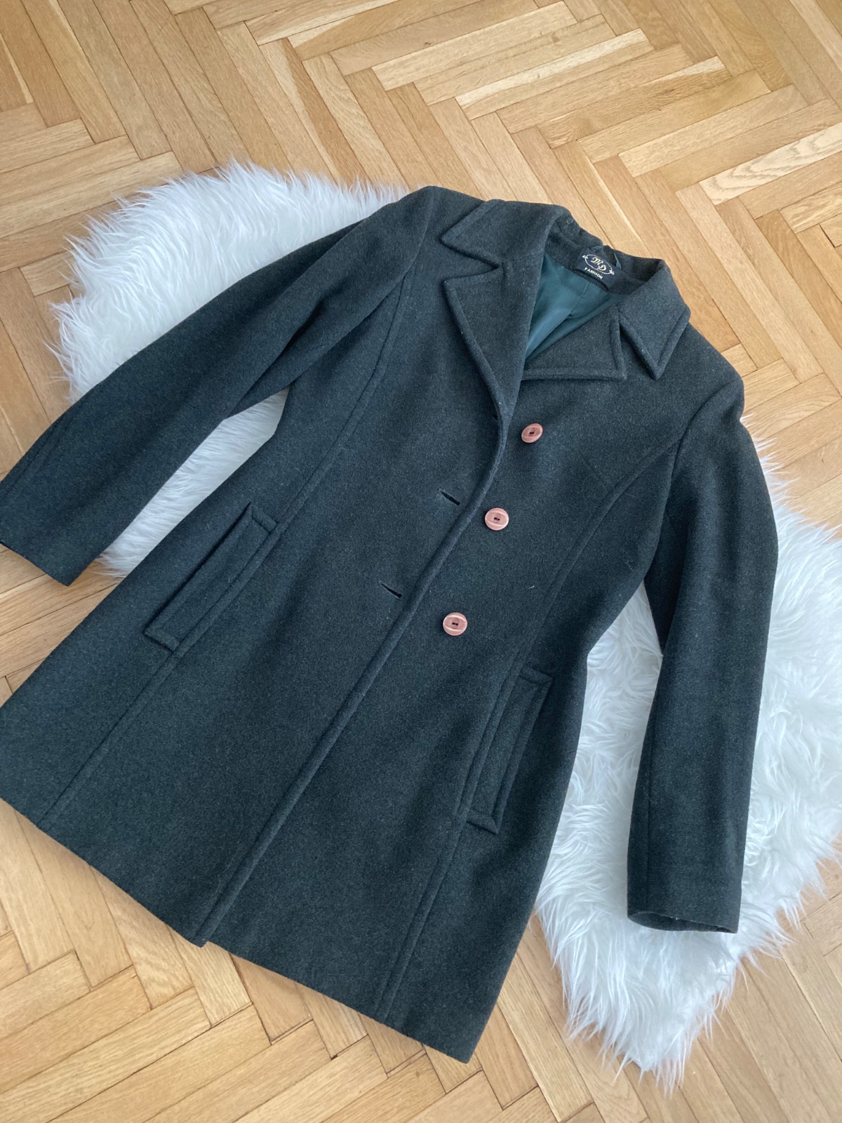 Kabat rovného strihu s vreckami, s podielom vlny 75%. Nosený veľmi zachovalý stav, bez poškodenia či opotrebovania. Farba zelená tzv. Vojenská zelená. Veľkosť 36 - sedi od XXS - M. Zmerám ozvi sa.