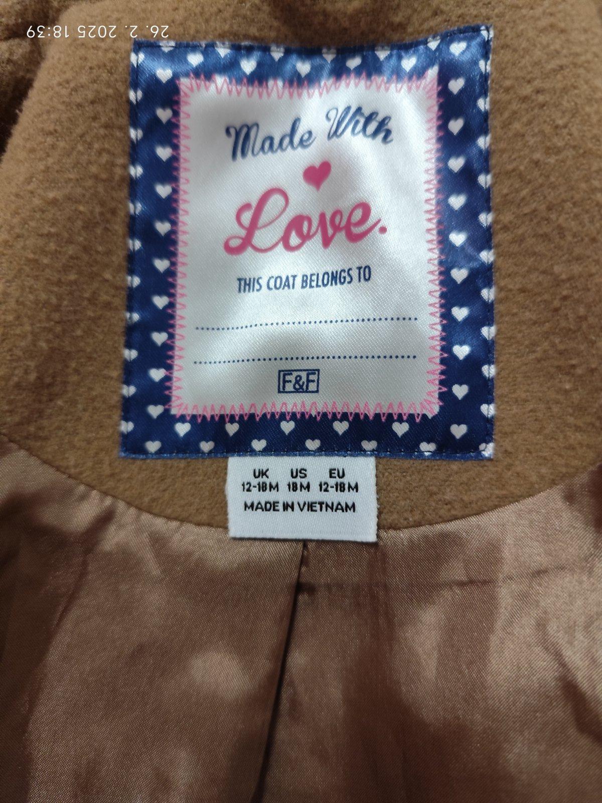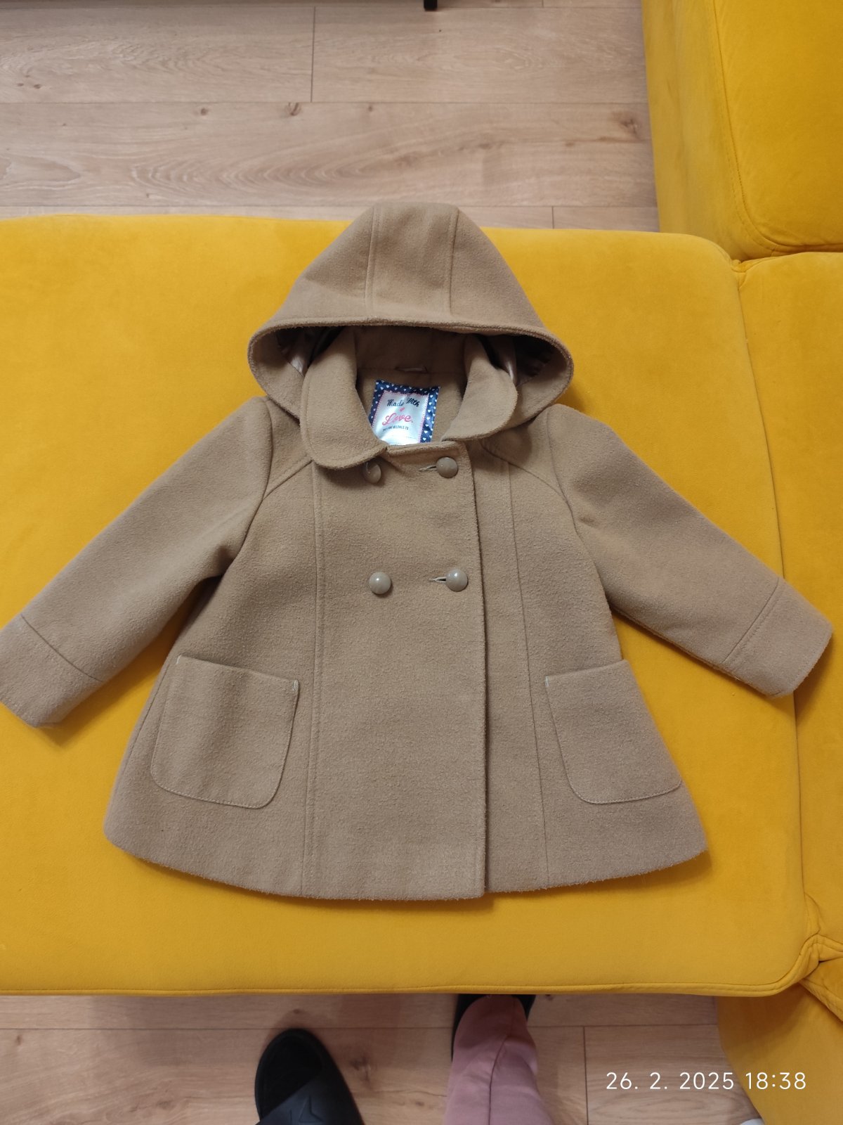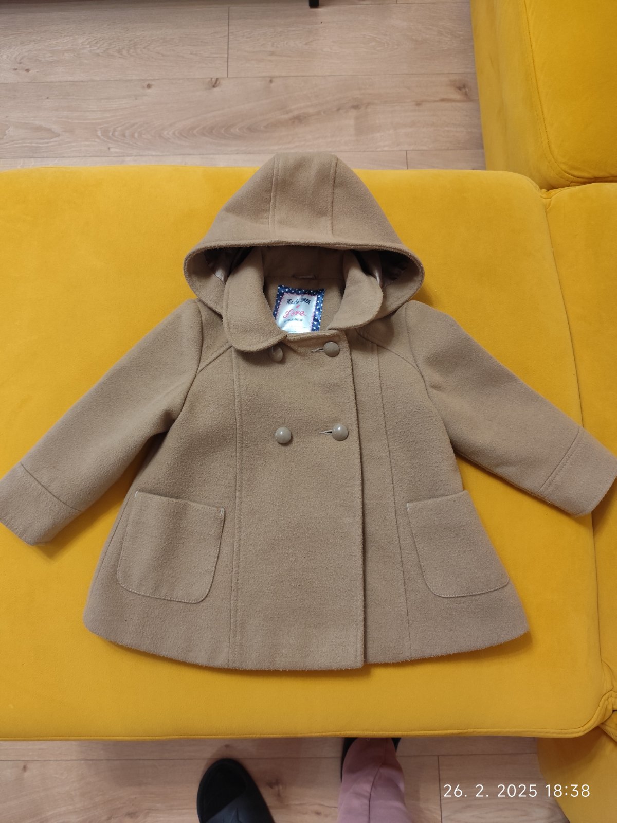 Kabátik pre malú parádnicu. Dcérka ho mala iba raz oblečený. Veľkosť 12 -18 mes. (86). Kabát vyzerá skutočne pekne.