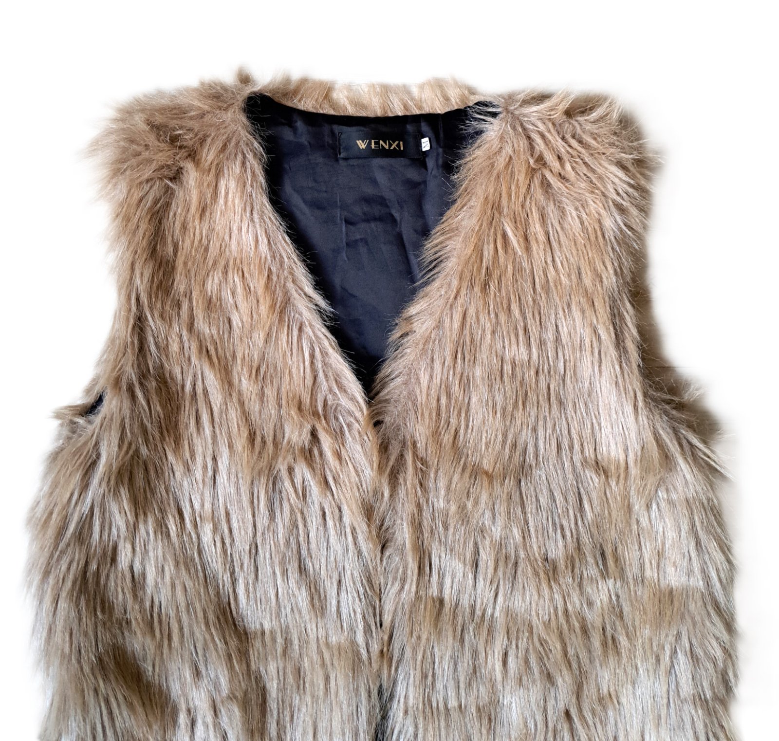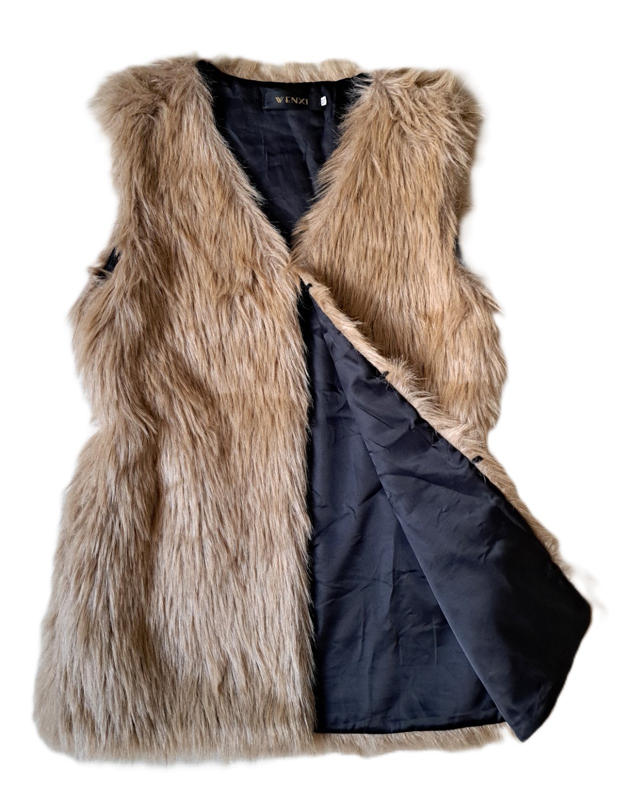 Dámska vesta zn. Wenxi - nosená bola minimálne, je v super stave. Veľkosť je uvedená M, no sedí skôr ako menšie M, prípadne S. Je z umelej kožušiny, je veľmi príjemná, mäkučká, nepúšťa chlpy. Zapínanie má na háčiky. PC bola 30 eur.