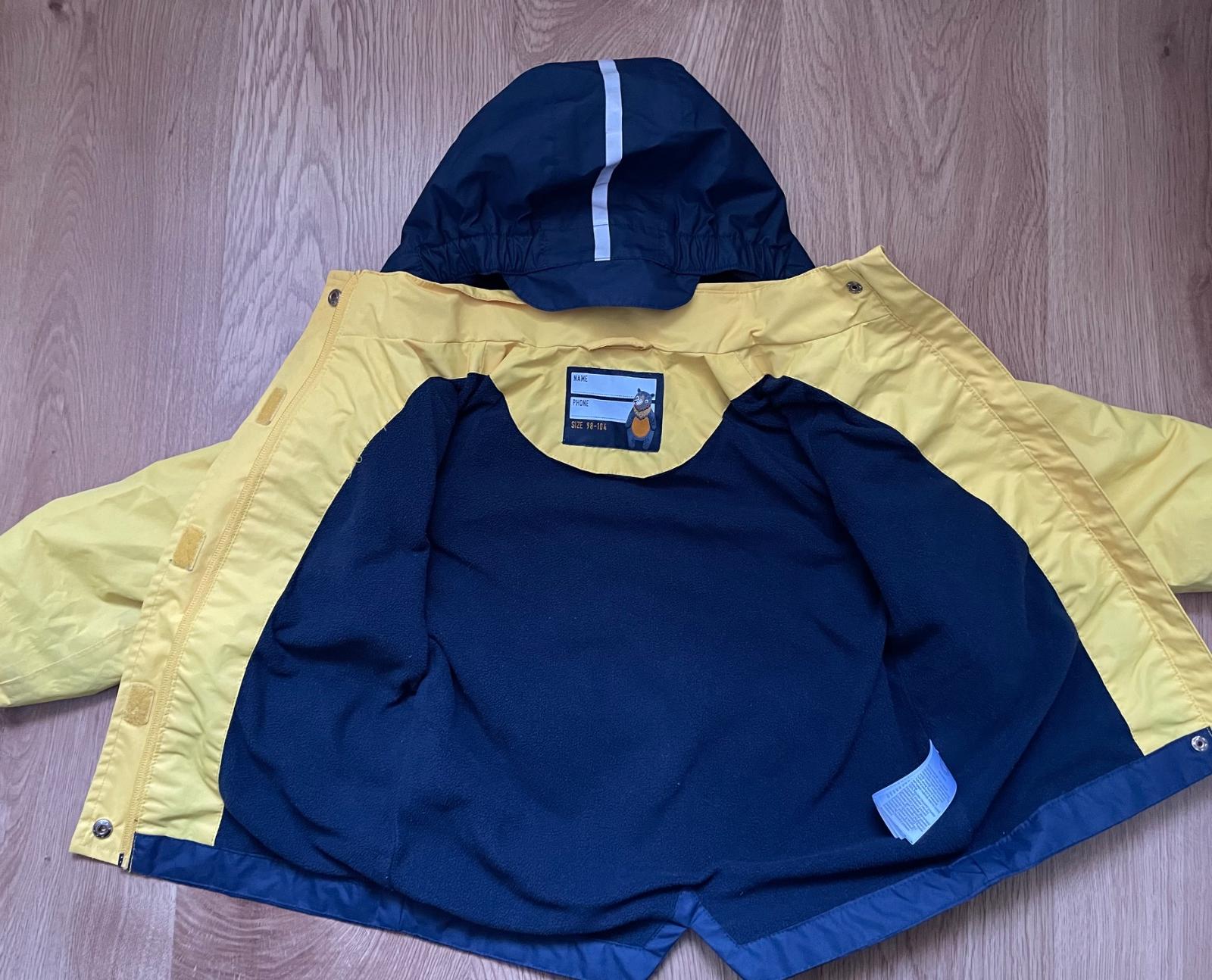 Bunda podšitá flísom, veľkosť 98/104 (2-3 roky), dobrý nosený stav, má pár fliačikov.