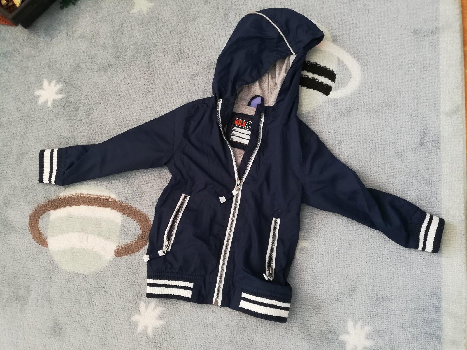 Bunda nosená len mojim synom, dvojčíslo 98/104. Dobrý nosený stav, na lemoch žmolky. Bunda vyzerá velmi pekne. Sýte farby.