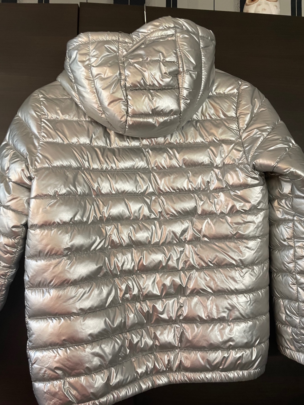 Nosená bunda v dobrom stave, hore na pravej strane je jedna nitka vyparana, na rukavoch zo zadnej strany je malinka dierka, a maly fliacik vid foto.