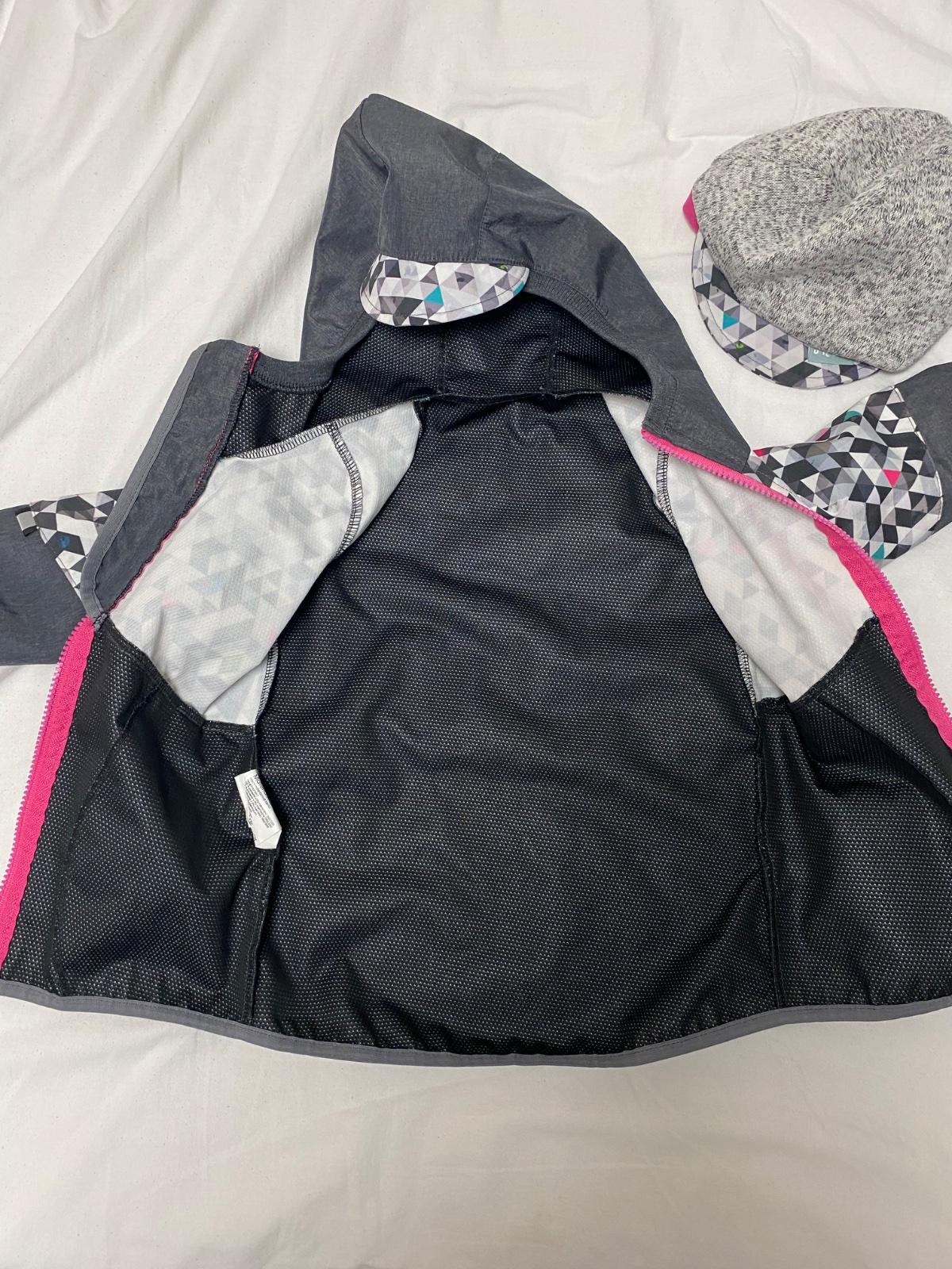 Tenký nezatepleny Softshell, velskost 92/98, bez chýb a vad, k to mu čiapočka so šiltom na jarné počasie rovnakého vzoru. Dievčenská ale môže byt univerzálna.