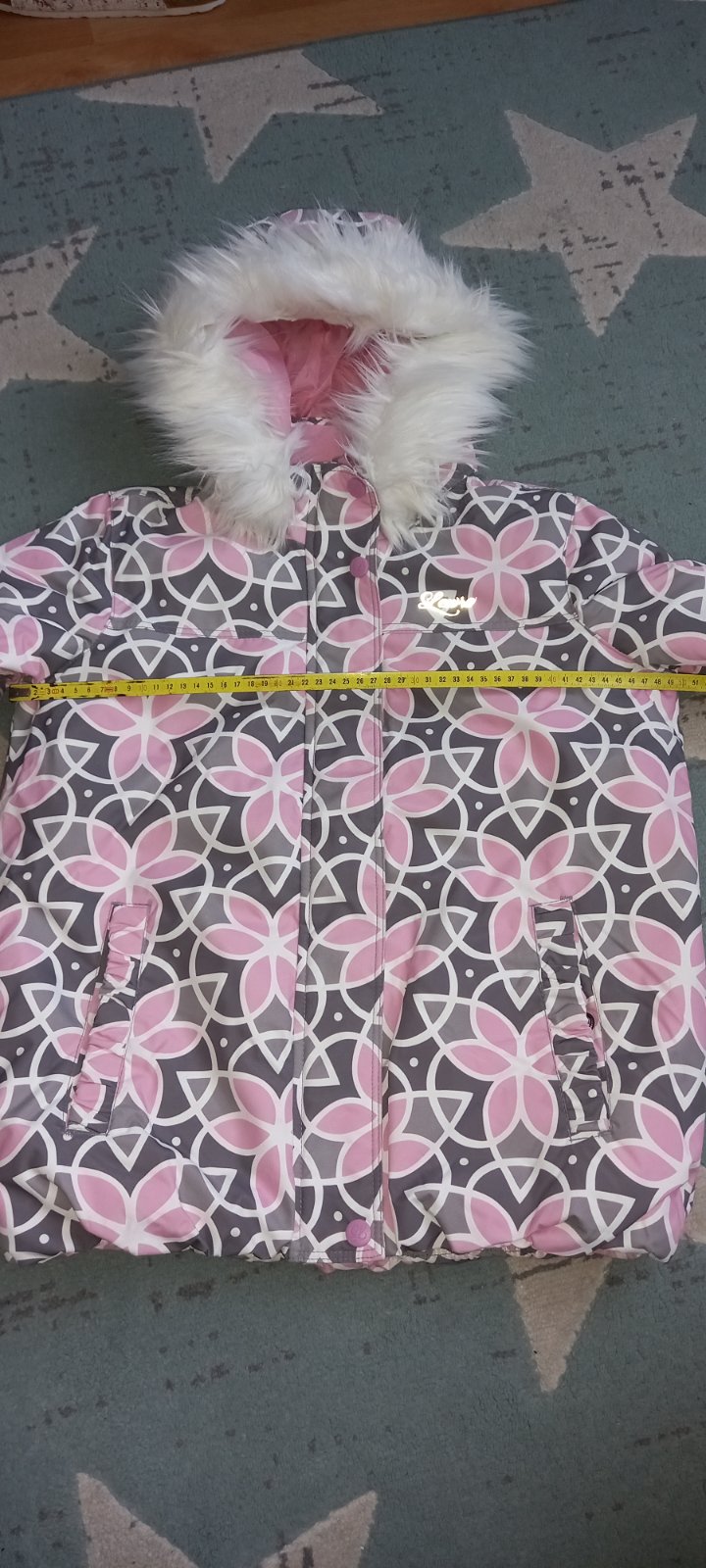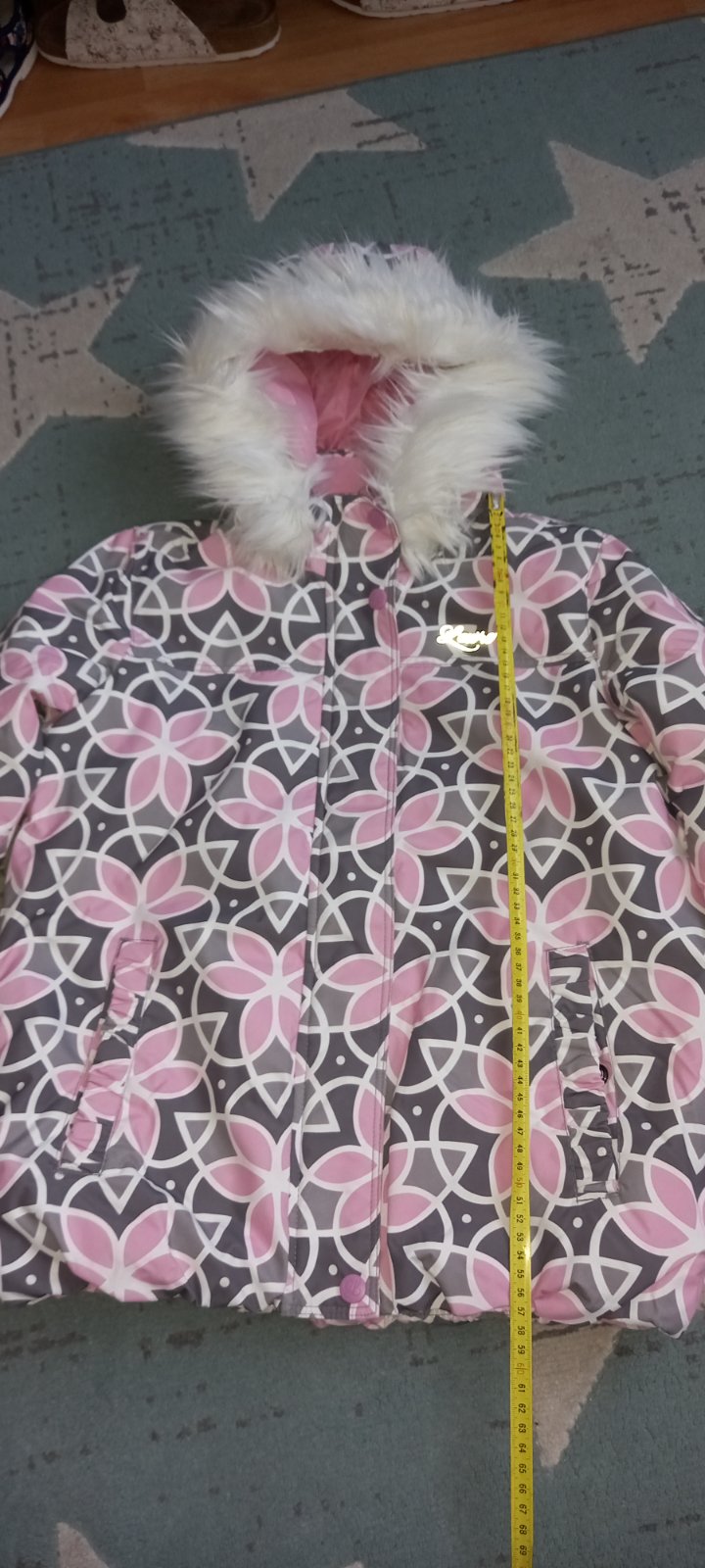 Predám zimnú dievčenská bundu, veľkosť 140/146 vo vynikajúcom stave, je ako nová, super teplá. Kapucňa aj kožušina sa dá odopnúť. Rozmery sú na fotkách.