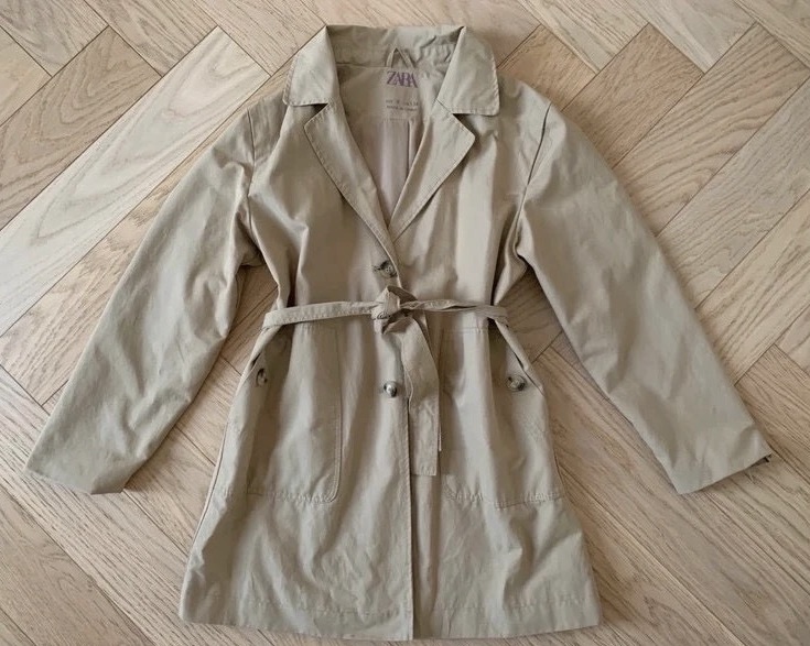 Zara prechodná bunda vo velmi peknom stave bez poškodenia. Celková dlžka 70cm,dl.ruk. od krku 59cm,obvod hrud:2*43,5cm.