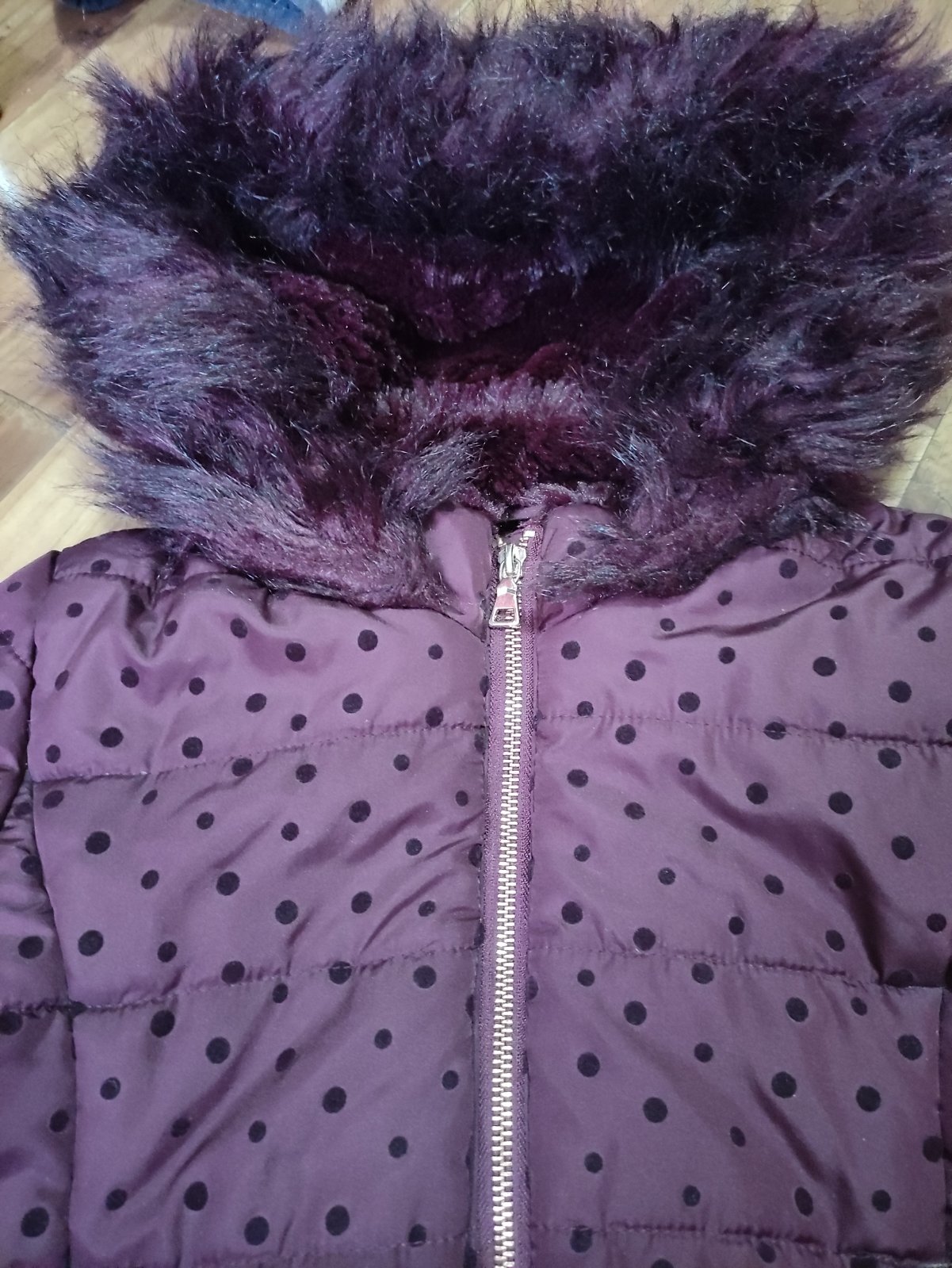 Krásna teplučka zimná bunda, bordovej farby, kapucňa napevno. Nosená v top stave. Rukáv od krku 58 cm, dĺžka 62cm