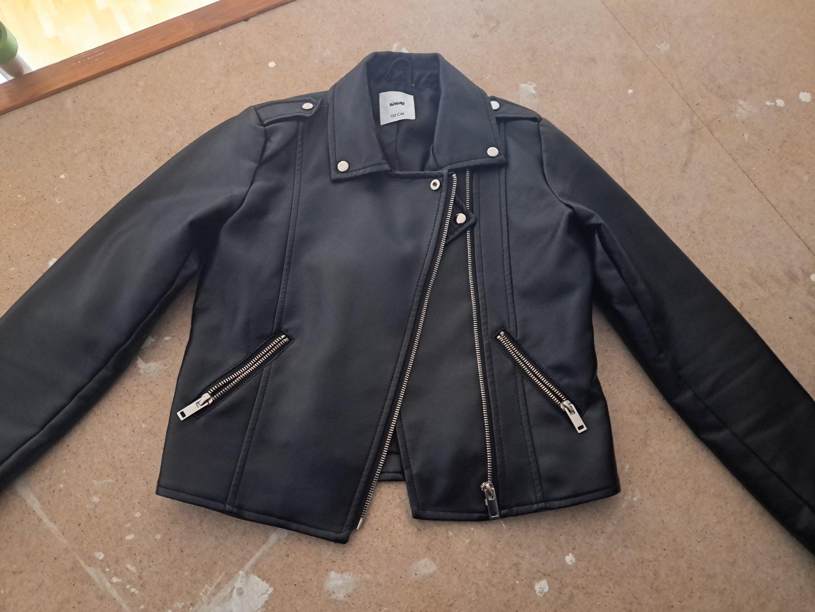 Koženková bunda Sinsay veľ. Cca,sedí na 152,bez poškodení ako nová,zipsy strieborne