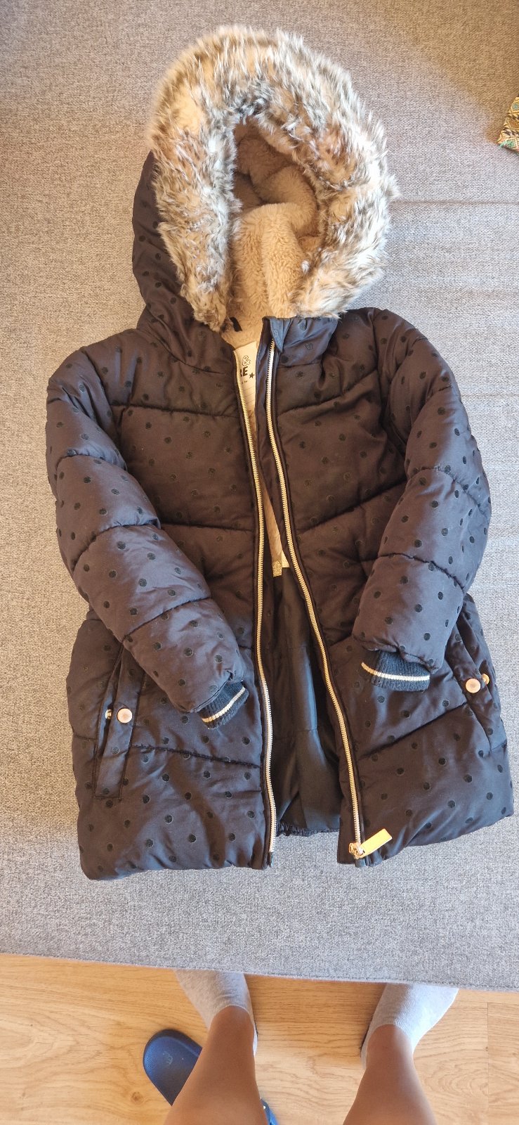 Dobrý deň, ponúkame zimnú bundu po dcérke, nosená jednu zimu, úžasná, teplá, s kapucňou, nedá sa odopnúť. Veľkosť 110, stav výborný, skoro ako nová, žiadne poškodenia.