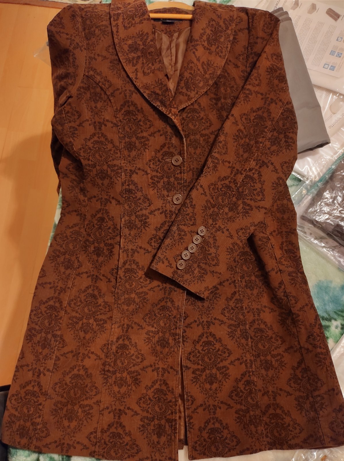 Kabát veľkosť L, niečo ako semiš. Úplne nový, nesadla mi veľkosť. Kupovaný na Temu. Rozmery: dĺžka 102cm, šírka pod pazuchami 50cm a dĺžka rukáva od šitia 61cm. Poštovné podľa SP, ale skôr ako balí...
