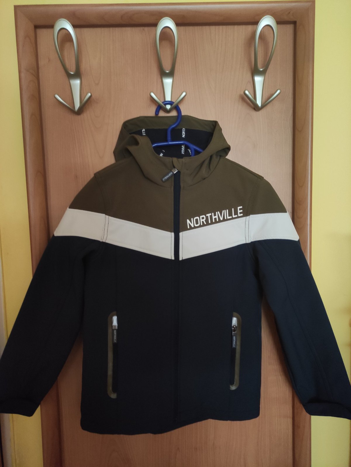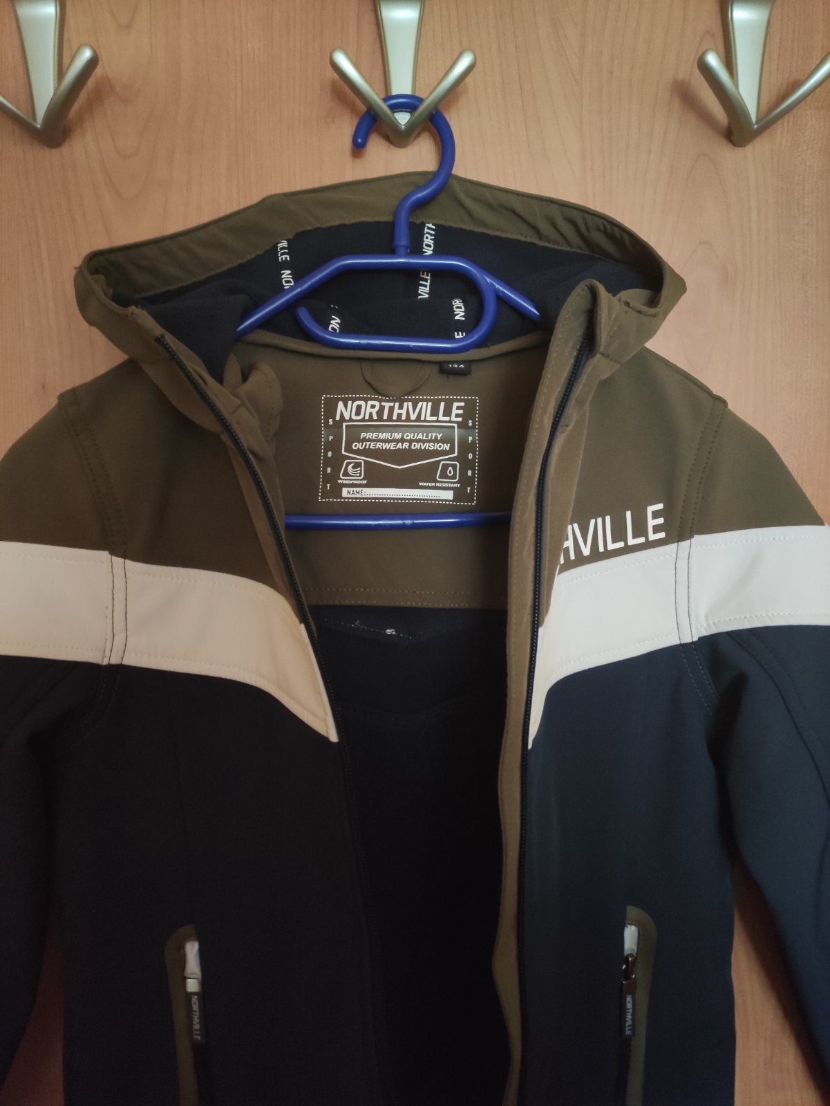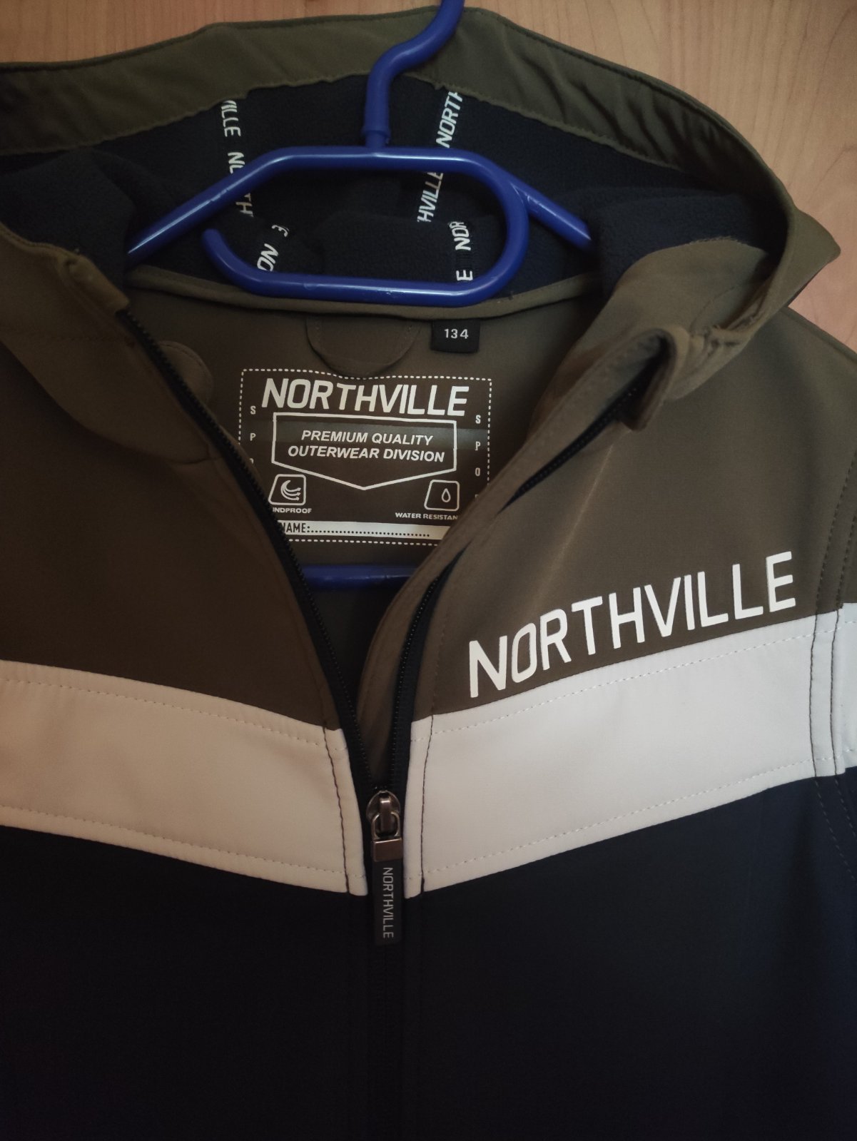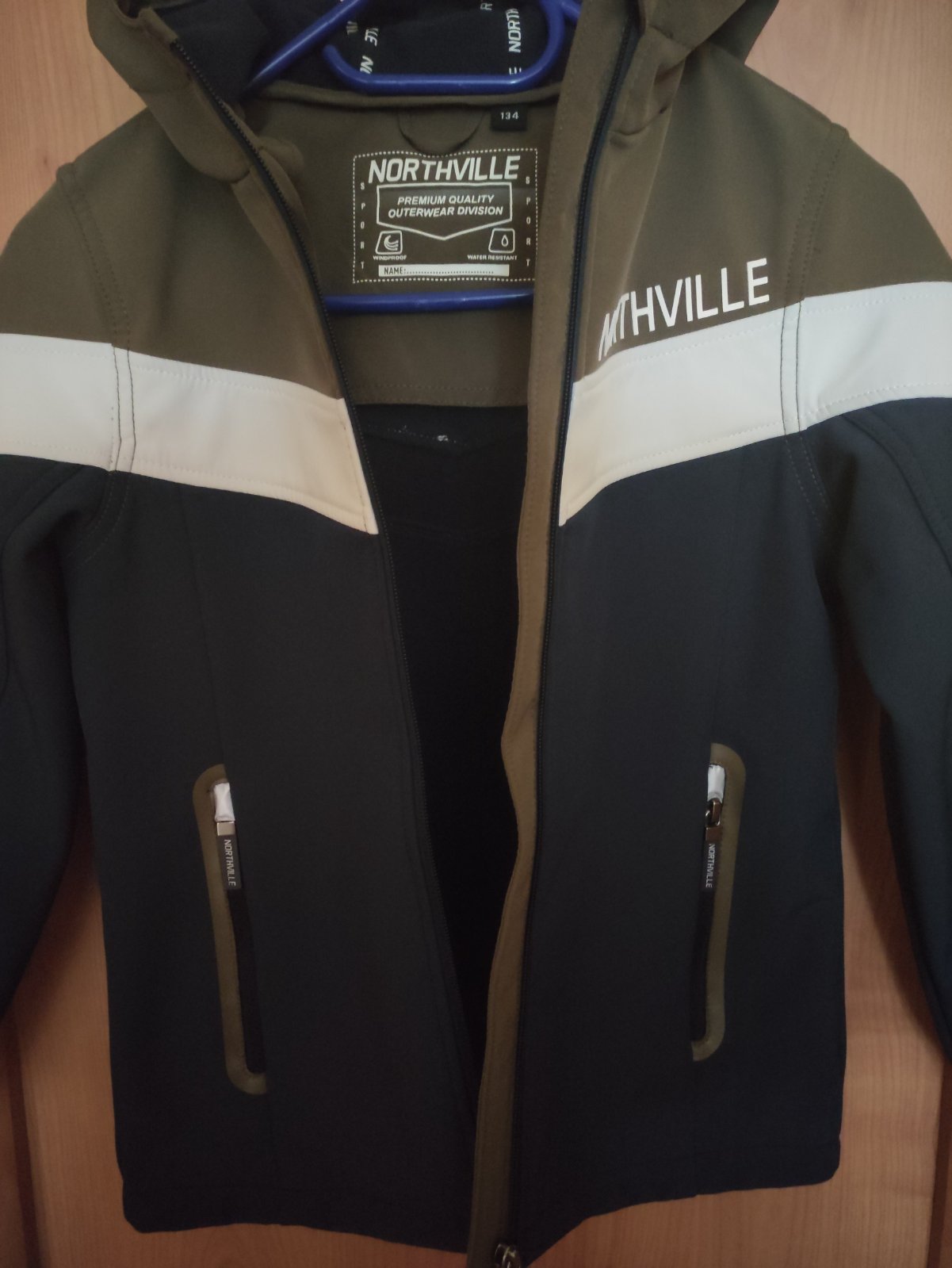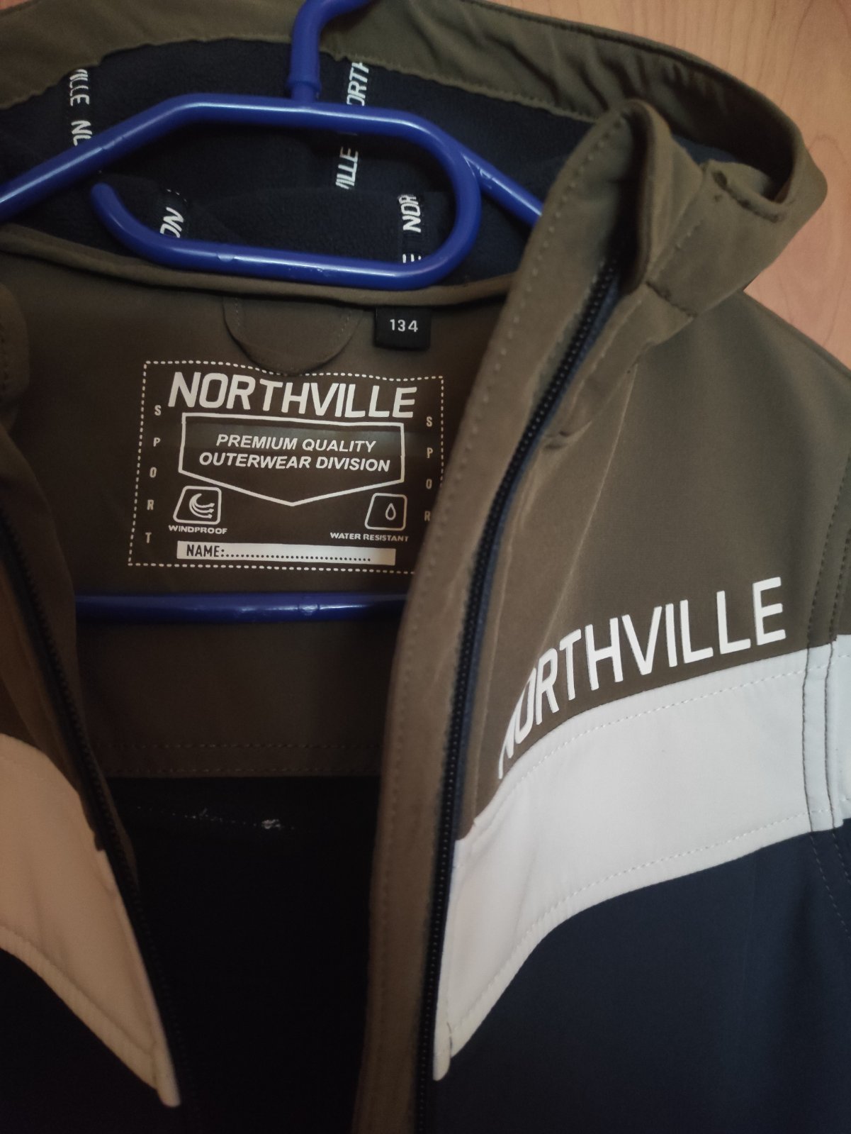 Pekná softshellová bundička zn. Northville. Veľmi ľahko kombinovateľná. Bundička je v tmavomodrej, bielej a olivovej farby. Bez poškodenia.