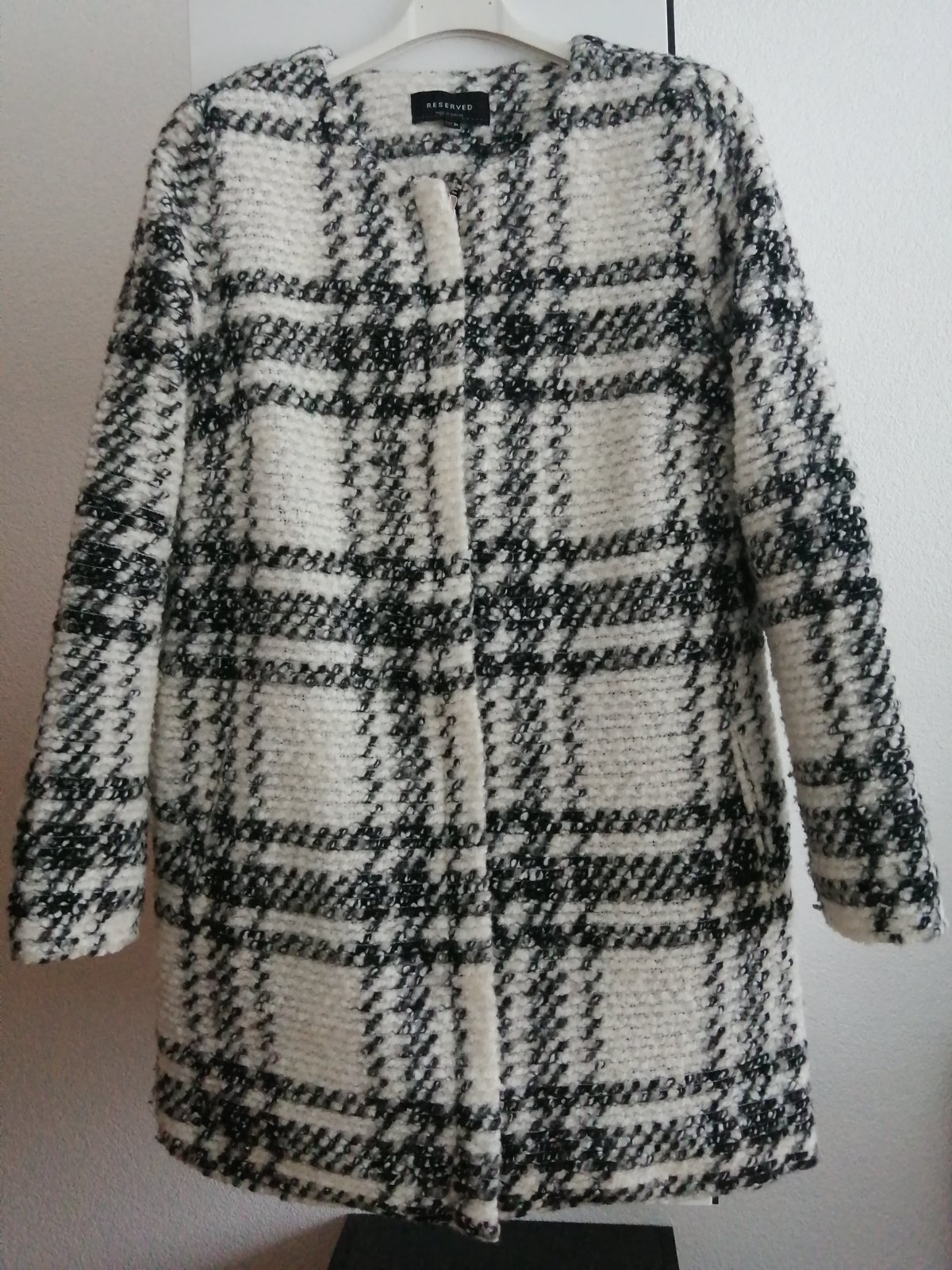 Pekný kabátik zn. Reserved, veľkosť 36 alebo S. Farebná kombinácia je smotamovo - krémová s čiernou. Zvnútra s podšívkou, vhodný na chladnú jeseň, začiatok jari, prípadne počas teplejšej zimy. Vo veľmi dobrom stave. Cena 10 eur + poštovné