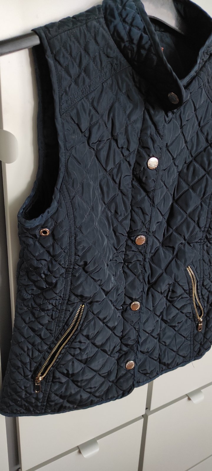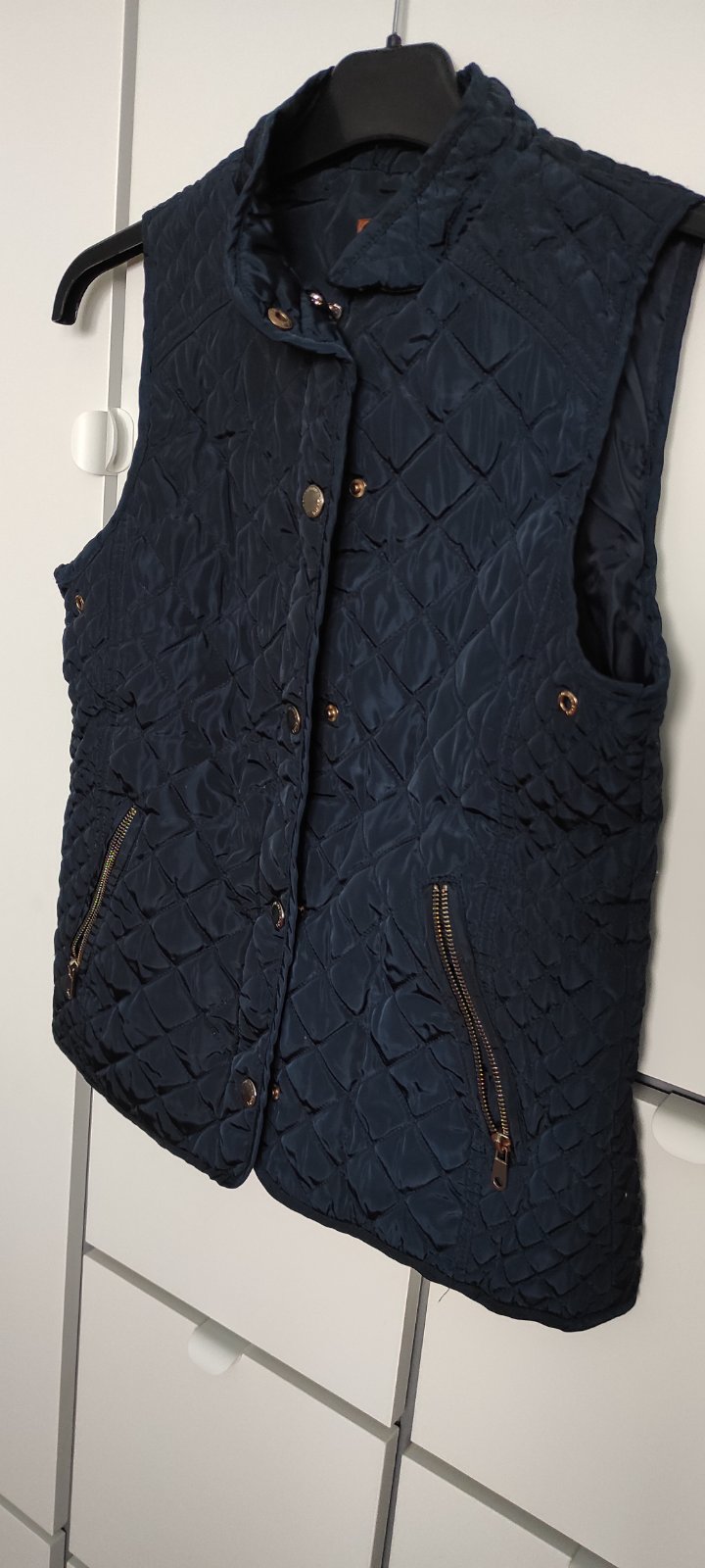 Zapínanie na zips a cvoky. Vesta je tenká.