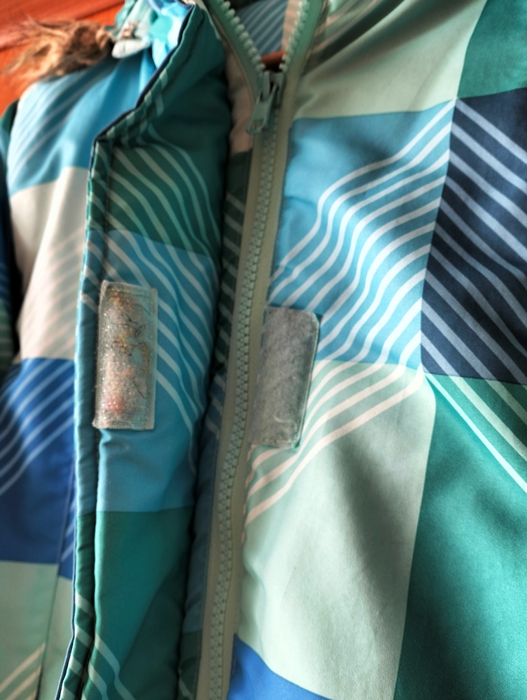 Vetrovka bola nosená, no nenašla som nijaké poškodenia ani fľaky. Kožušinka už nie úplne pekná, určite by však ešte poslúžila.