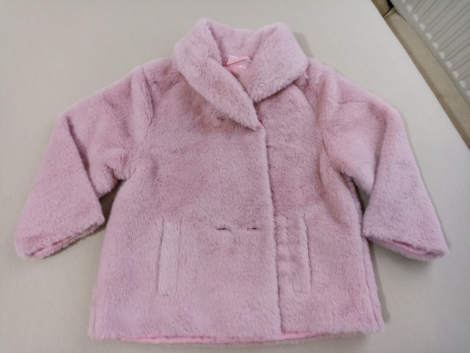 Predam novy plysovy kabatik staroruzovej farby velkosti 86, je uz bez visacky. Zabudli sme na neho a dcerke je uz maly. Vpredu ma 2 vrecka, bez kapucne, ale vyvyseny golier, je sirsi a ma 2 rady gombikov takze sa da velkostne prisposobit. V pripade zaujmu mozem premerat dalsie rozmery, ale zakladne rozmery su dlzka 39 cm a sirka pod pazuchami 33 cm.