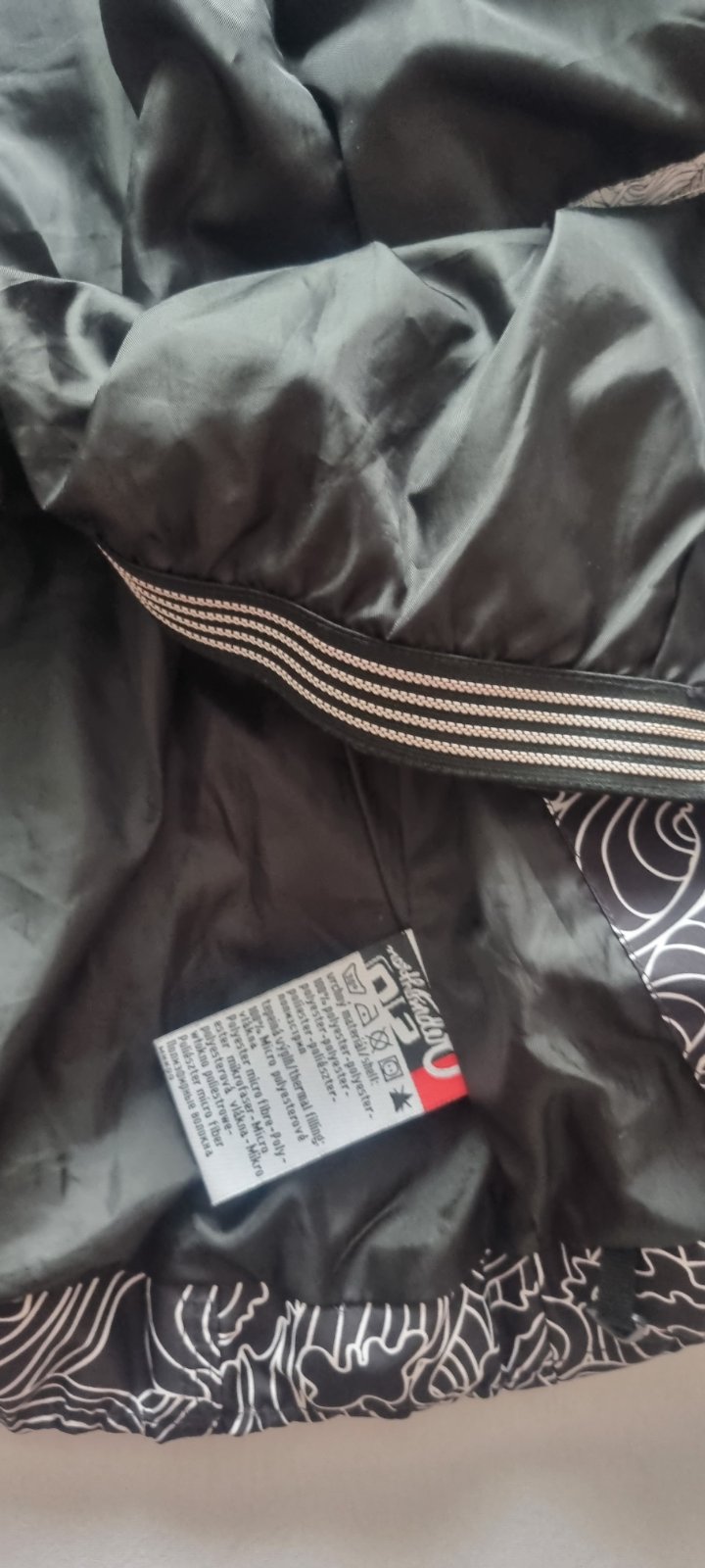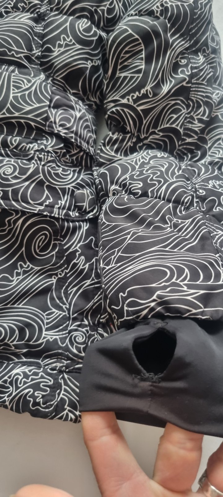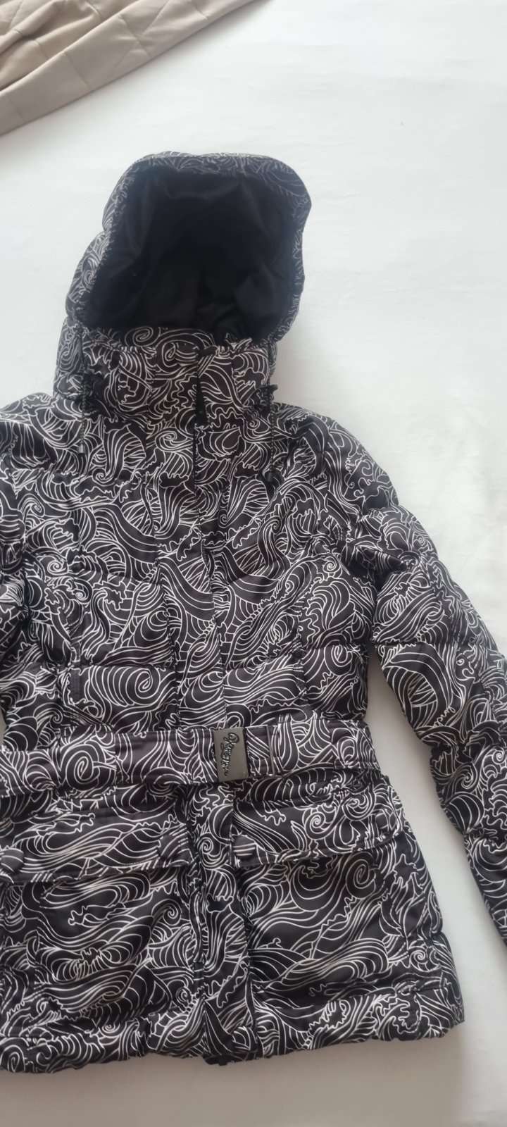 Malo nosena, vodevzdorna, vetruodolna, opasok, kapuca sa stahuje, ide dolu