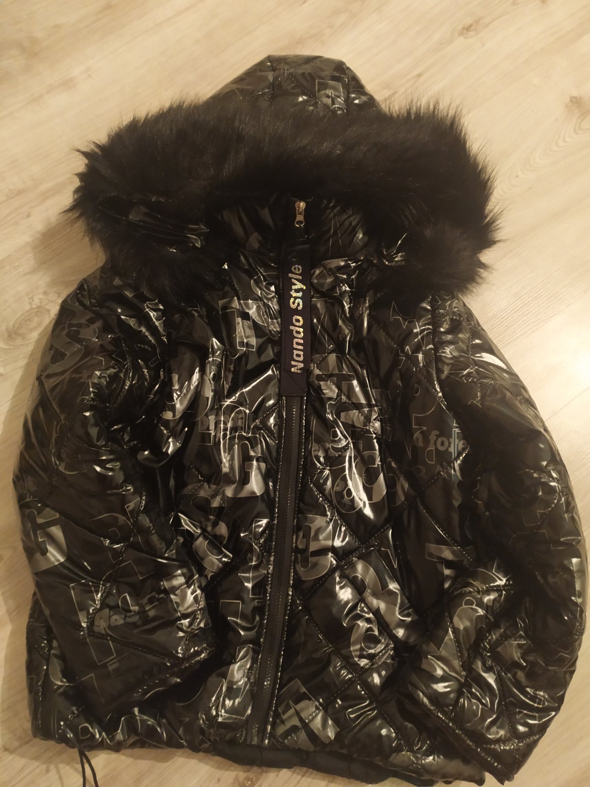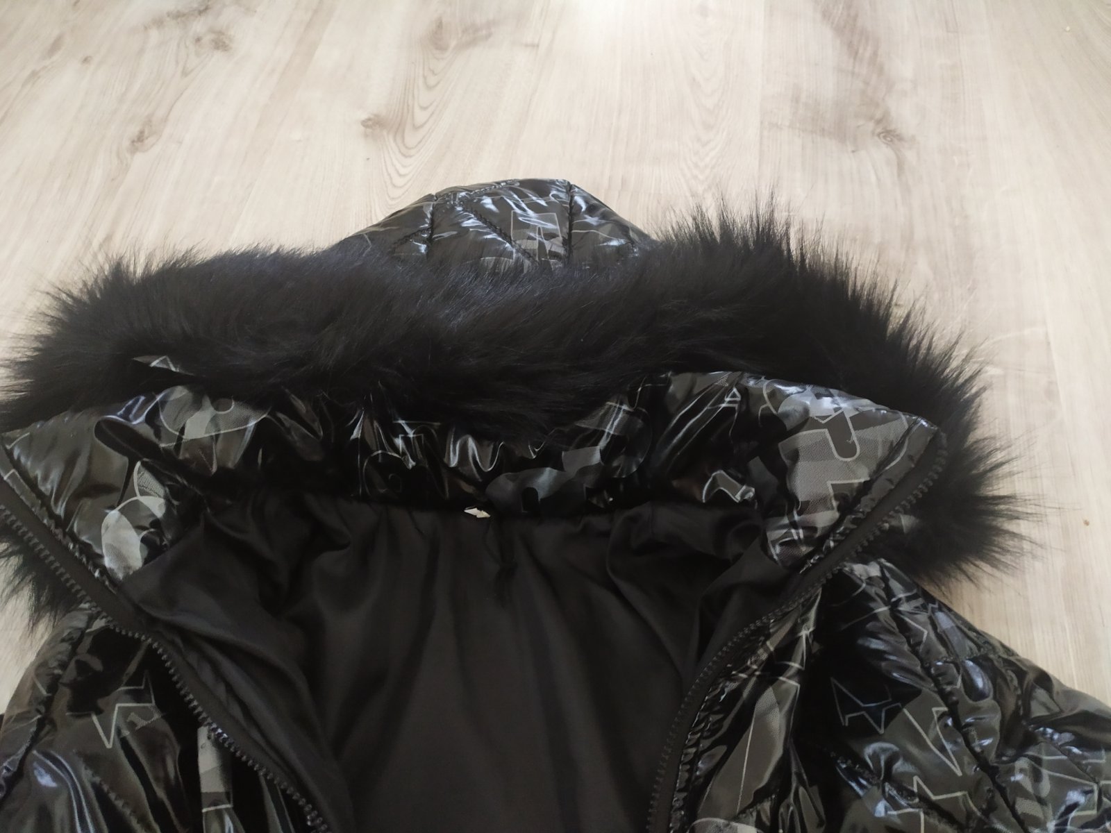 Bundička je lesklá, kapucňa sa dá odzipsovať má krásnu huňatu kožušinku, dole sa dá ešte stiahnuť.